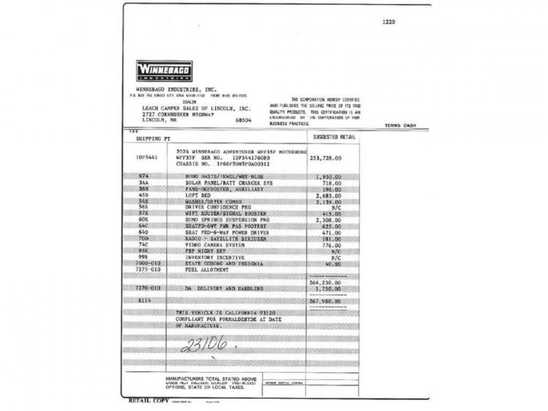 Winnebago Adventurer Class A gas motorhome 35F highlights: