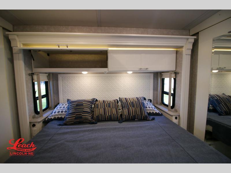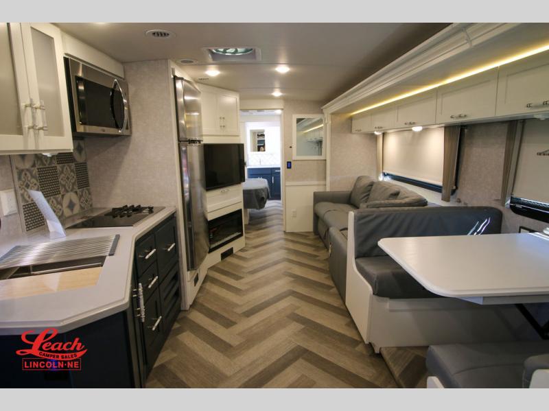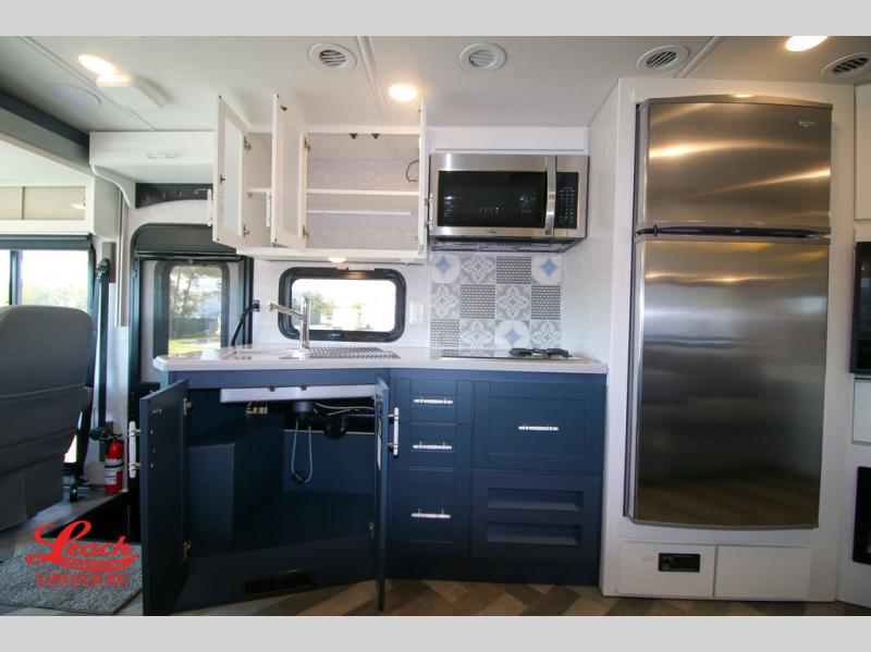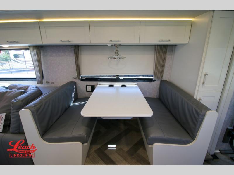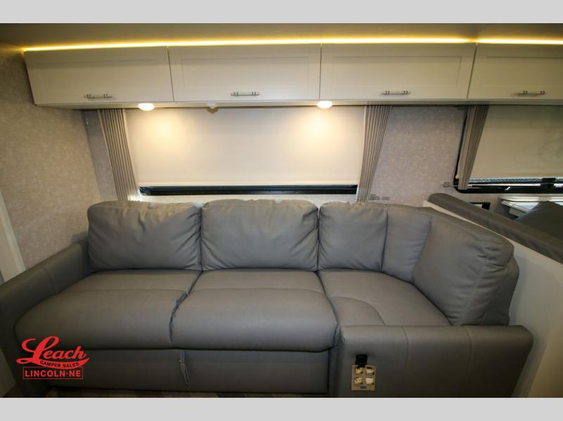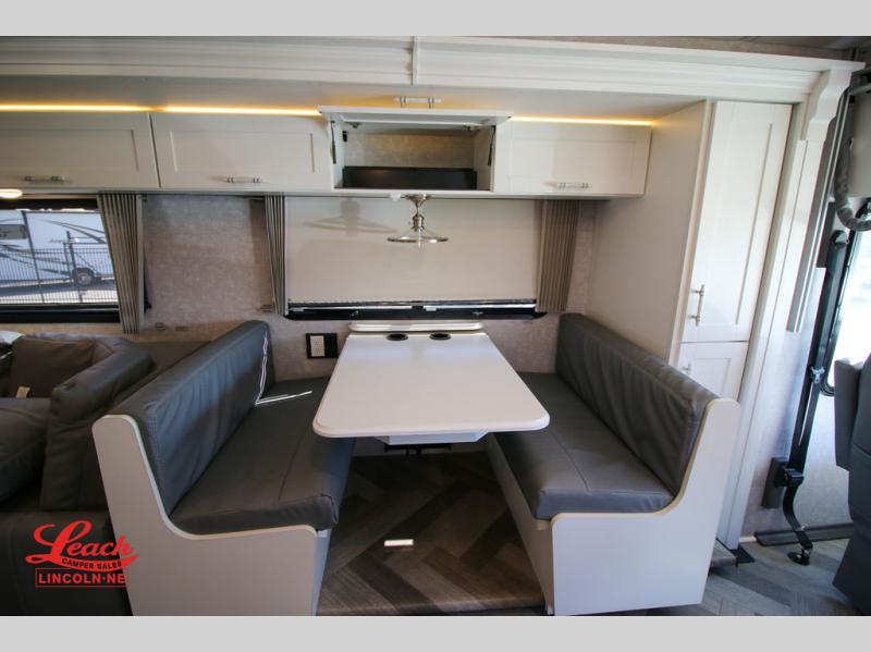 The family-friendly Adventurer Class A gas motorhome by Winnebago is the ultimate family getaway for your trips near and far. The swivel captain's seats include fixed lumbar support and multi-adjustable slide/recline for a truly comfortable ride. You will appreciate the Sony 9" TS radio with Bluetooth, a rearview and sideview monitor system with a color touch screen, SiriusXM ready, and more to make the drive easier than ever. There is also a Driver Confidence Package with added safety features for an overall better driving experience. The powered blackout roller visor/shade on the front windshield will provide privacy when you stop for lunch, and the dash workstation will come in handy when you've got a deadline. Each model includes residential vinyl flooring throughout, a soft vinyl ceiling, a Corian galley countertop, and ceramic tile backsplash. The under-bed storage will provide a place for your luggage, and you'll find lighted storage compartments outside for all your larger gear. The optional SumoSprings suspension system and steering stabilizing system can be added to make the drive even smoother, and the optional WinnSleep Premium Serene mattress is another option you may want to add for all-around comfort!
