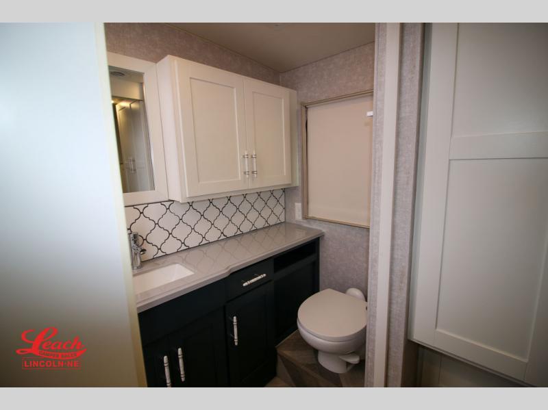 Traveling with your family or larger group will be so easy in this spacious Adventurer Class A gas motorhome. The full and half bath are sure to come in handy, and you'll find plenty of seating space for everyone with the extendable sectional sofa. Once the chef has prepared lunch on the gas/induction range top, the kids can enjoy it at the dinette with a Hi-Lo table, and the adults can take their plate outside to sit under the 16' power awning. Whether you're watching a movie on the 39" HDTV or just enjoying the glow of the electric fireplace, you will truly enjoy your time spent in this coach. The master bedroom includes a king bed slide, dual wardrobes and nightstands, and a space to add an optional washer and dryer if you choose. And if you need additional sleeping space, just choose the optional StudioLoft bed!
