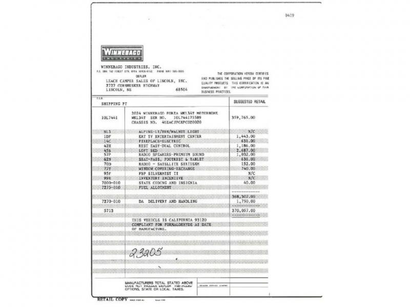 New 2024 Winnebago Forza 34T Motor Home Class A - Diesel