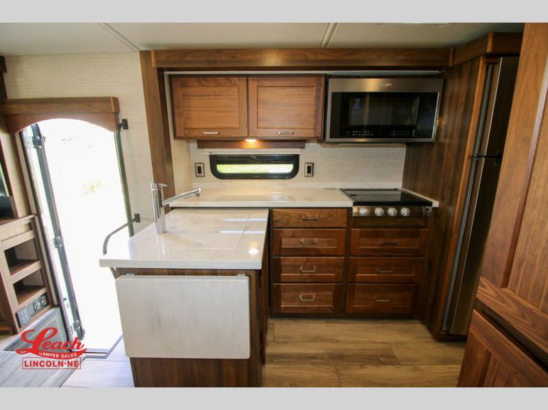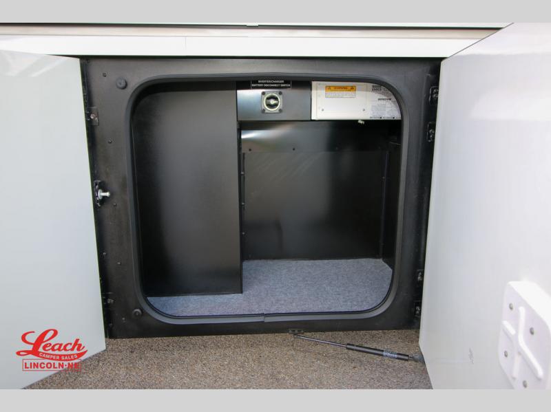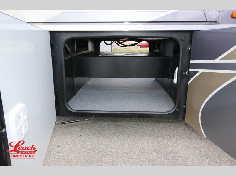 With this Forza Class A diesel motorhome, you won't even need to plan a destination because this coach is the only getaway you need! You could park it in your backyard and still feel as if you've gone away on a retreat. The interior has great accommodations with its BenchMark dinette, theater seating, and swivel/recline cab seats, and the large slide provides extra space for you to spread out and relax. The kitchen is fully equipped with the best tools, and the flip-up countertop extension is going to be helpful for providing extra counter space when it is pulled out into place. You will find another large slide that carries over from the kitchen into the bedroom, and the bedroom even has its very own 32" HDTV so that you can watch your favorite shows while lying down on the king-size bed. You can also choose the optional Studio Loft drop-down bed on this model if you are needing more sleeping space!