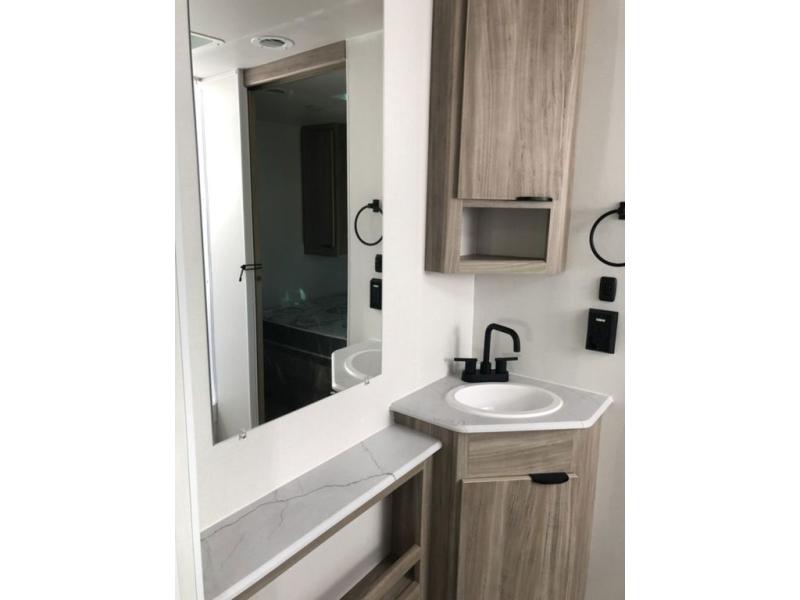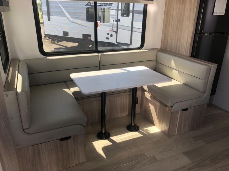 This single slide Access travel trailer offers you a great home on wheels featuring dual entry doors, a spacious walk-thru bath, and private front bedroom with private entry. You will find the main combined living area and kitchen open and spacious thanks to the slide. Cook your family their favorite meals with the appliances inside, dine at the u-shaped dinette where you can add an optional TV opposite if you like. A convenient walk-through bath is spacious enough for two to get ready at once since it is the full width of the trailer. Next, head through space saving sliding doors to the front private bedroom with its own access to the outside through the second entry. Here a queen bed awaits for a great nights rest. This bedroom offers plenty of storage in bedside wardrobes, under bed storage for extra blankets and larger items, plus so much more!