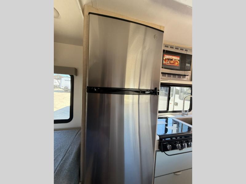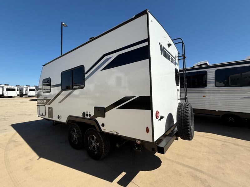 Start out on your boundless journey in one of these Winnebago Industries Towables Micro Minnie travel trailers! Towing is made simple with the 7' width to keep your Micro Minnie in your rear-view mirror. They don't lack in features either although they are compact in size. The spacious galley including a sink, refrigerator, a cooktop, and even a convection microwave oven allows you to cook without compromise. You will not only enjoy the entertainment found indoors with a Smart TV, a JBL premium sound system and Aura Cube high performance mechless media center, but outdoors you will also enjoy the JBL premium speakers and a power awning with LED lighting. Each model also comes with flexible exterior storage to make packing quick and easy, a 200-watt solar panel for off-grid camping, and Dexter TORFLEX torsion stub axles for smooth towing!