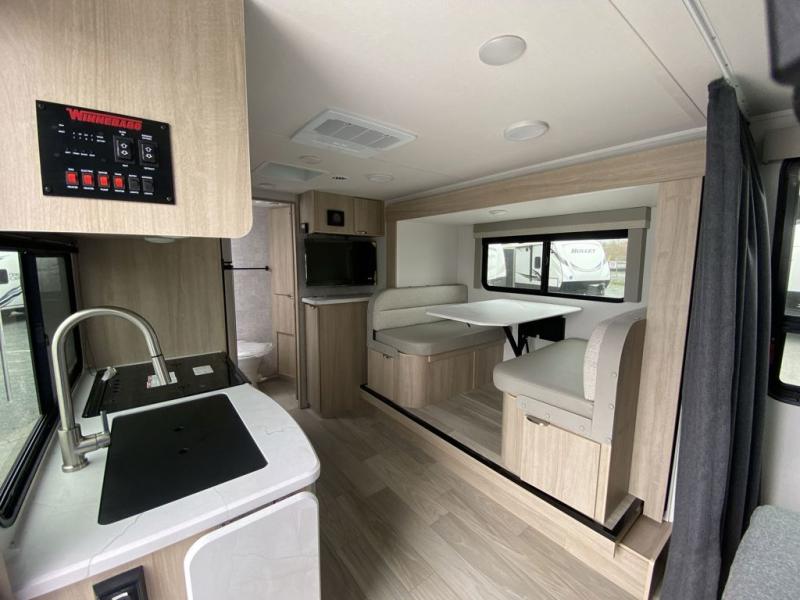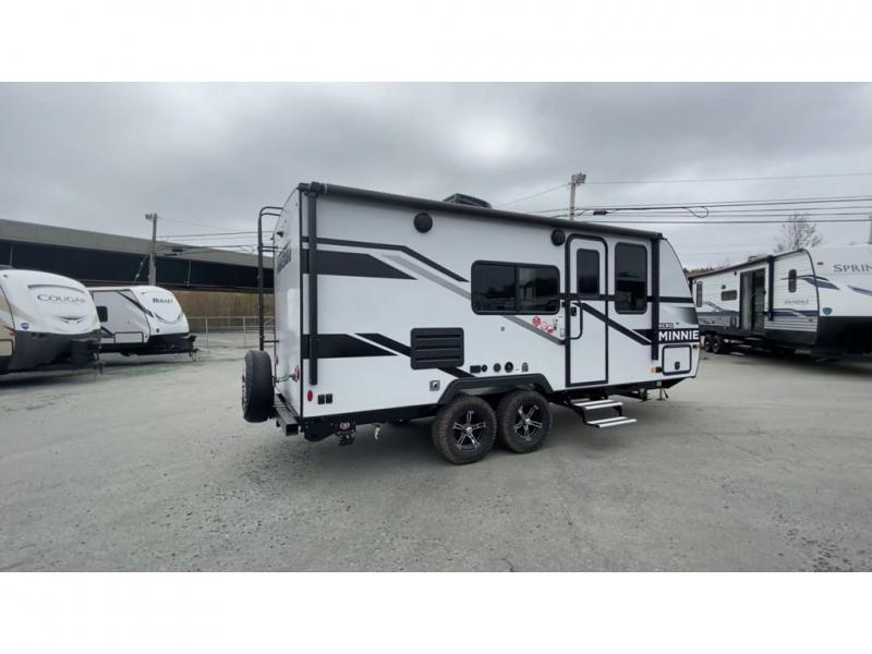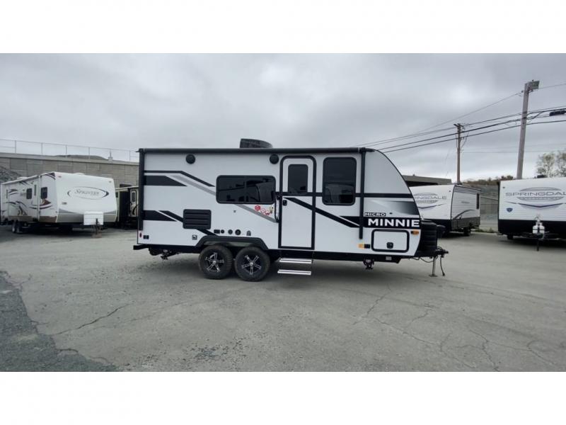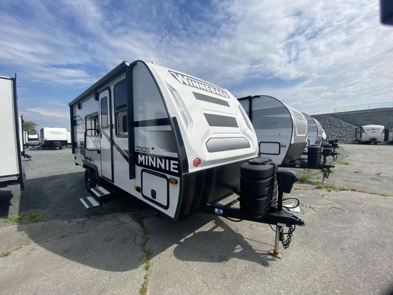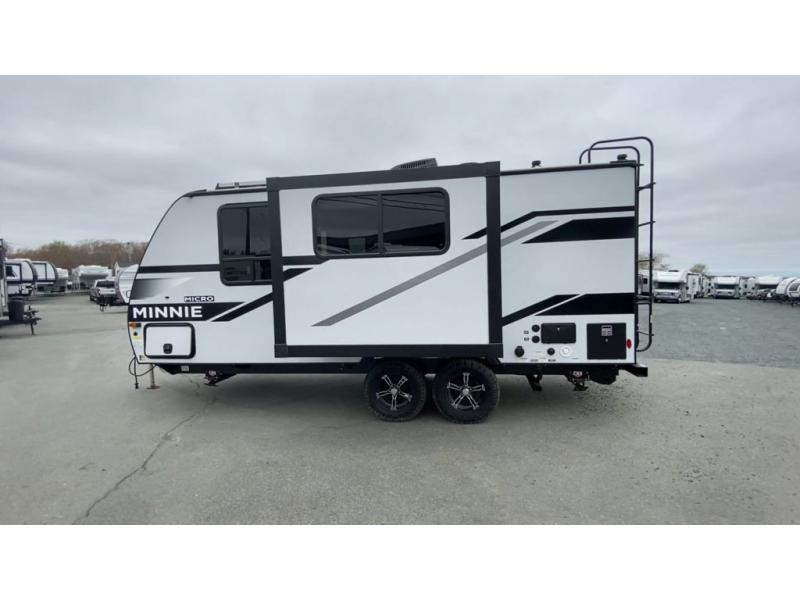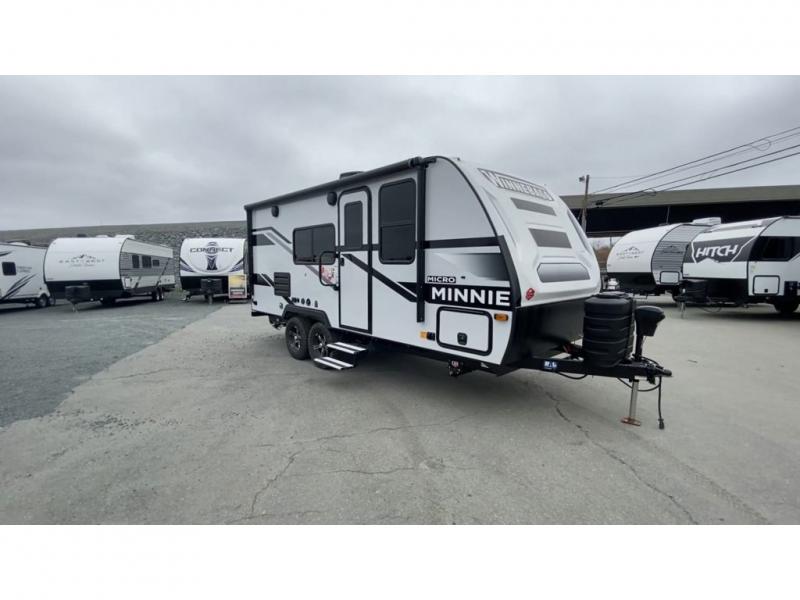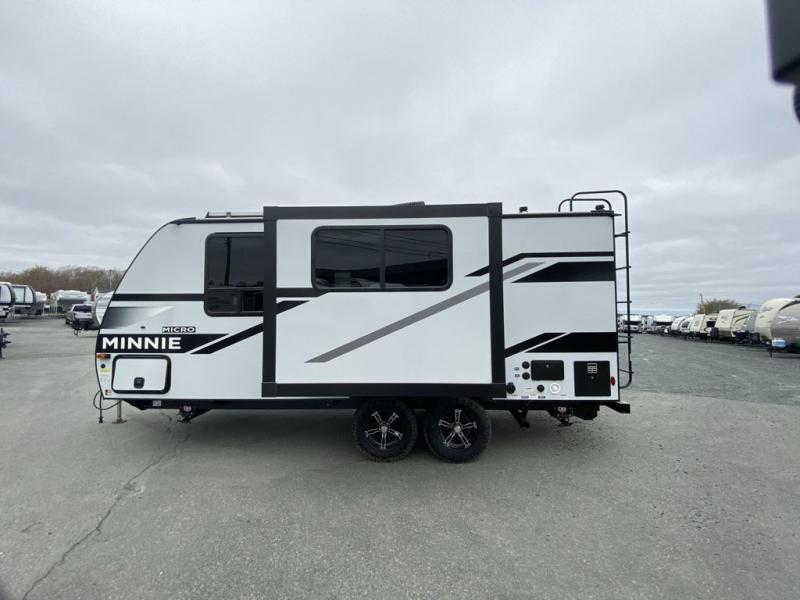 Start out on your boundless journey in one of these Winnebago Industries Towables Micro Minnie travel trailers! Towing is made simple with the 7' width to keep your Micro Minnie in your rear-view mirror. They don't lack in features either although they are compact in size. The spacious galley including a sink, refrigerator, a cooktop, and even a convection microwave oven allows you to cook without compromise. You will not only enjoy the entertainment found indoors with a Smart TV, a JBL premium sound system and Aura Cube high performance mechless media center, but outdoors you will also enjoy the JBL premium speakers and a power awning with LED lighting. Each model also comes with flexible exterior storage to make packing quick and easy, a 200-watt solar panel for off-grid camping, and Dexter TORFLEX torsion stub axles for smooth towing!