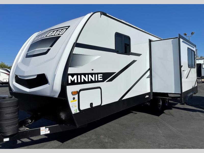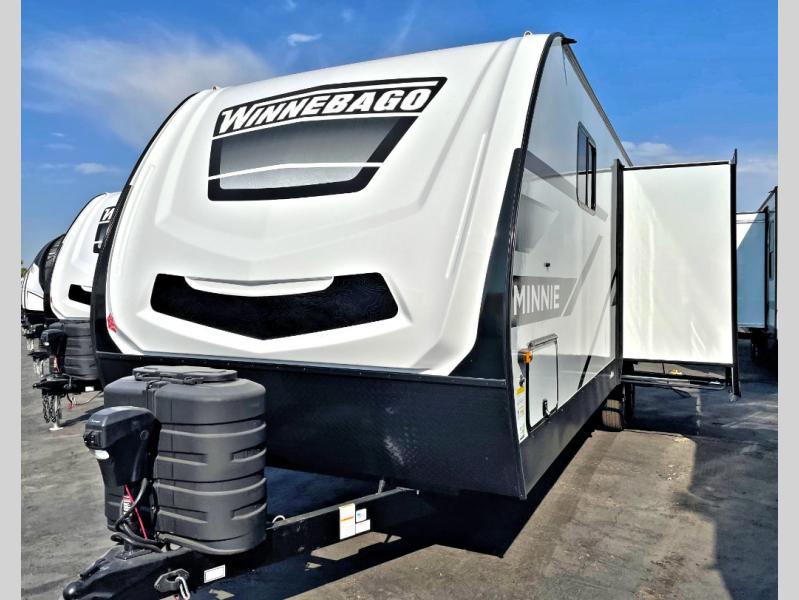 With any Minnie travel trailer by Winnebago Industries Towables, you'll be gaining an award-winning ticket to the good life! Lightweight towing is provided by the NXG engineered frame, and the Comfort Tech package will allow you to camp in all seasons with its enclosed underbelly, extreme weather radiant foil wrapping, and insulated heating ducts. Each model includes best-in-class exterior storage with up to 44 cu. ft. for all your camp gear, plus innovative interior storage for your belongings. You'll also find power stabilizer jacks outside, along with premium JBL speakers, an outdoor shower, a campside spray port, plus many more convenient features. The 200-watt solar panel will be perfect for some off-grid camping, and the Winnebago all-in-one control panel will allow you to control all of your units functions in one easy location. Head indoors to enjoy the full-overlay European style cabinetry and modern Cobalt decor, plus there are flexible furnishings, an open galley, and comfortable sleeping arrangements!