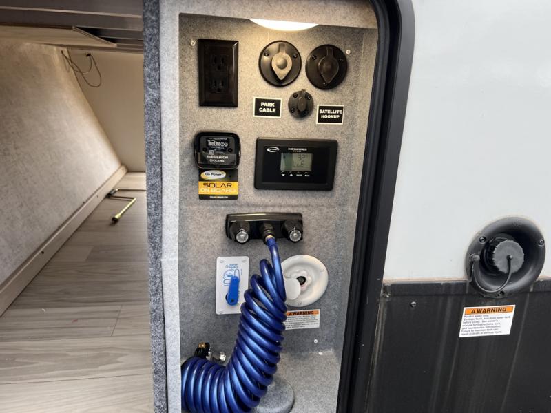 Each Voyage travel trailer by Winnebago Industries Towables includes a 200-watt solar panel with a 30 amp-charge controller and resettable breaker so you can camp off-grid. Also included is a heated and enclosed underbelly with radiant foil insulation for four seasons of travel, 2" thick FILON® MAX fiberglass sidewalls and a painted gel coat front cap with integrated LED lighting, a walk-on roof, plus power stabilizers for easy setup and stability. The interior offers many comforts of home, large windows, LED ceiling lights, ductless flooring throughout, and full kitchen amenities. No voyage is better than the one taken in a Voyage travel trailer! Come choose your model today!