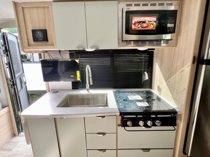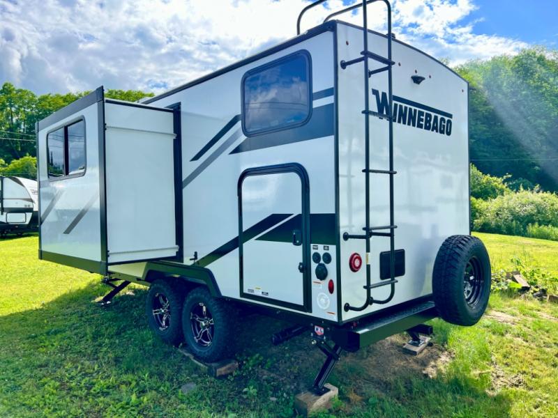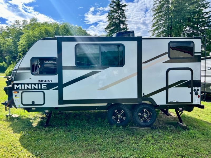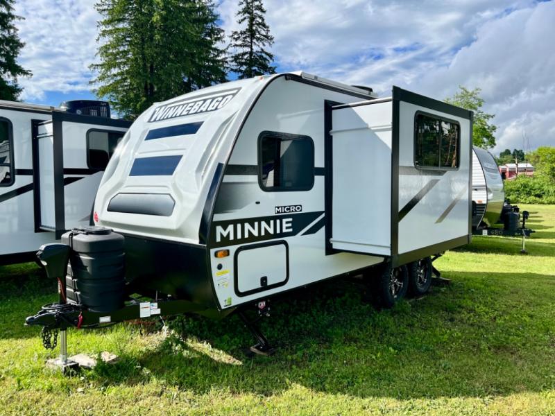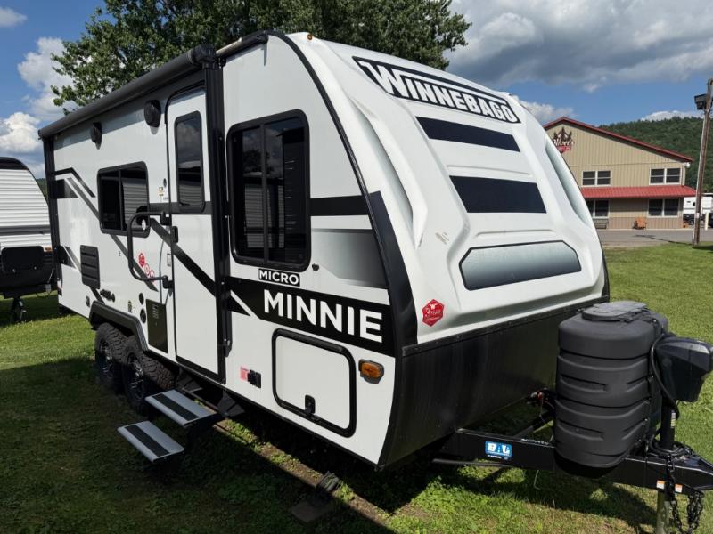 Start out on your boundless journey in one of these Winnebago Industries Towables Micro Minnie travel trailers! Towing is made simple with the 7' width to keep your Micro Minnie in your rear-view mirror. They don't lack in features either although they are compact in size. The spacious galley including a sink, refrigerator, a cooktop, and even a convection microwave oven allows you to cook without compromise. You will not only enjoy the entertainment found indoors with a Smart TV, a JBL premium sound system and Aura Cube high performance mechless media center, but outdoors you will also enjoy the JBL premium speakers and a power awning with LED lighting. Each model also comes with flexible exterior storage to make packing quick and easy, a 200-watt solar panel for off-grid camping, and Dexter TORFLEX torsion stub axles for smooth towing!