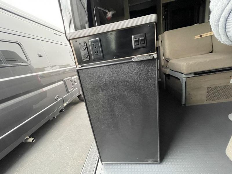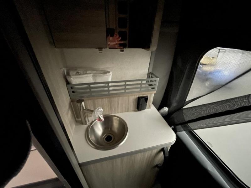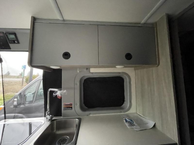 This camper van is perfect for independent travel or if you've got a camping partner to take along with you! The convertible dinette bed can transform into a twin-size bed for one or a double-size bed for two. The three seating modes include a belt mode, sofa mode, or lounge mode for even more comfort. You will find all you need in the kitchen to prepare meals each day, including a two burner range with a glass cover for more counter space and a 3.0 cu. ft. 12V single door compressor-driven refrigerator/freezer for food storage. There is a shower with a wall surround in the rear wet bath, along with a removable cassette toilet, a medicine cabinet with a mirror, and a wardrobe cabinet with added storage. This space could also be used as a mudroom after a day of exploring, or utilize it for storage!