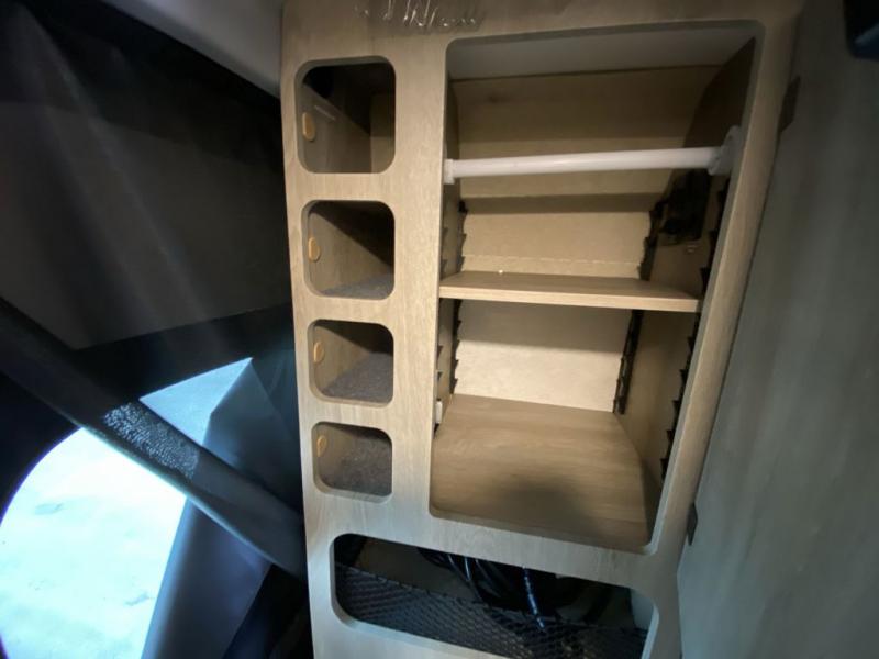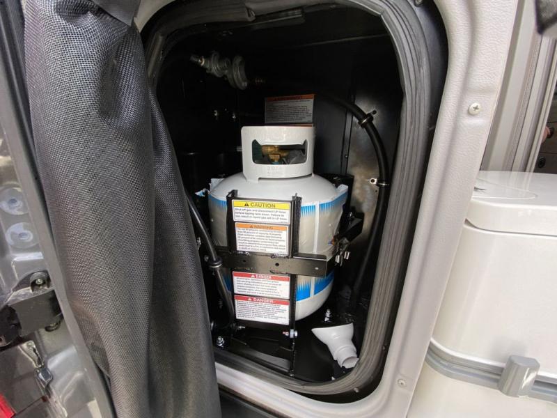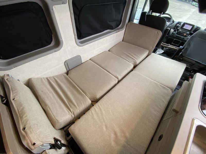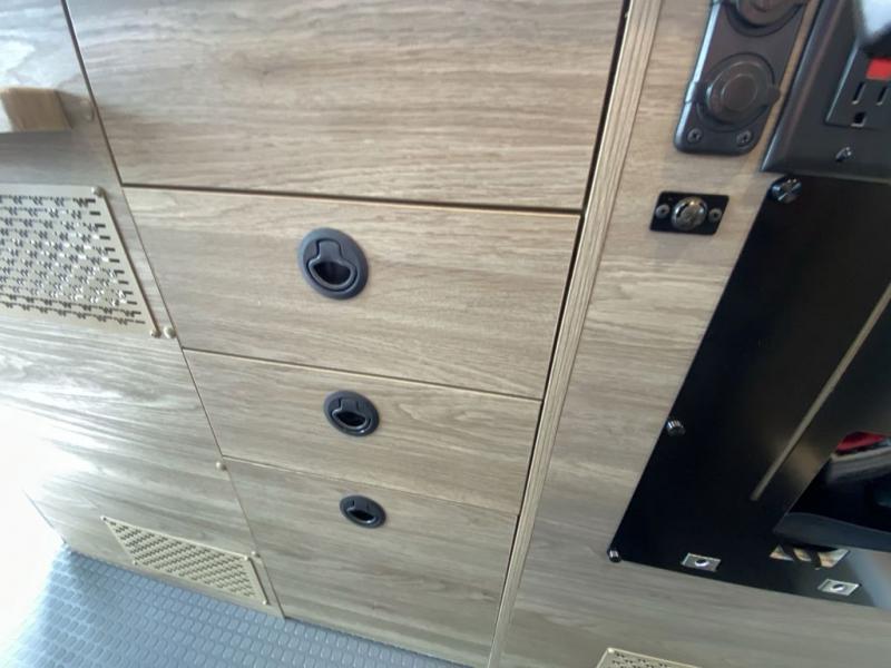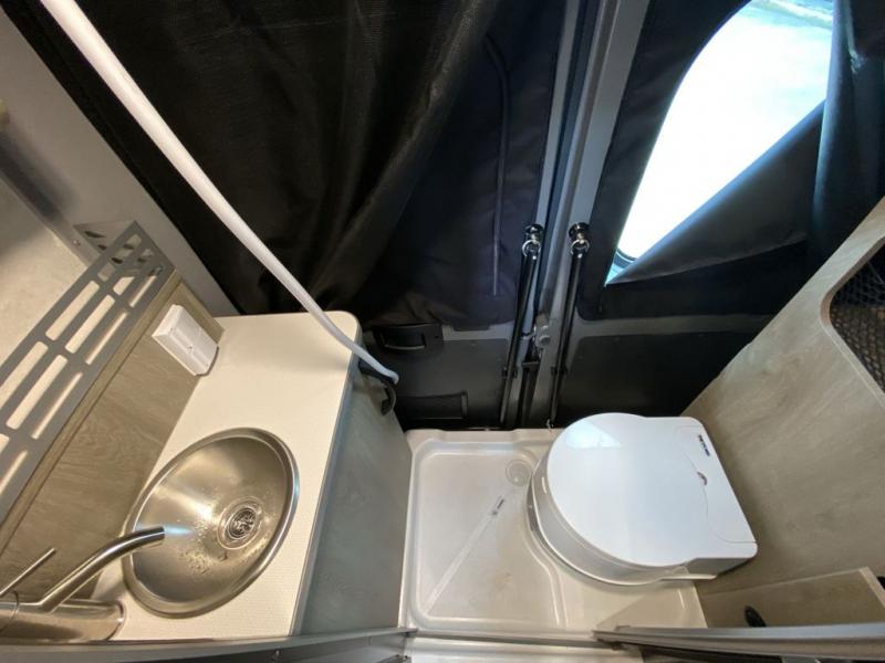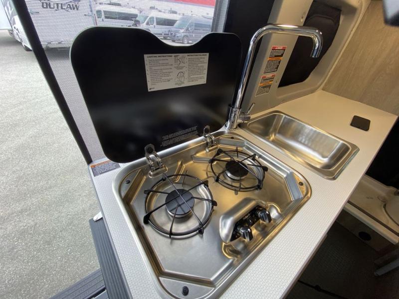 This camper van is perfect for independent travel or if you've got a camping partner to take along with you! The convertible dinette bed can transform into a twin-size bed for one or a double-size bed for two. The three seating modes include a belt mode, sofa mode, or lounge mode for even more comfort. You will find all you need in the kitchen to prepare meals each day, including a two burner range with a glass cover for more counter space and a 3.0 cu. ft. 12V single door compressor-driven refrigerator/freezer for food storage. There is a shower with a wall surround in the rear wet bath, along with a removable cassette toilet, a medicine cabinet with a mirror, and a wardrobe cabinet with added storage. This space could also be used as a mudroom after a day of exploring, or utilize it for storage!
