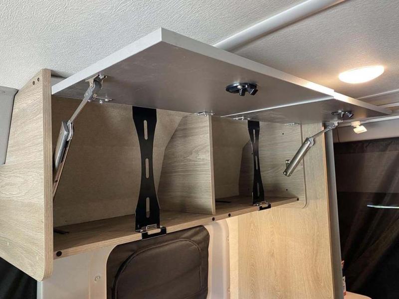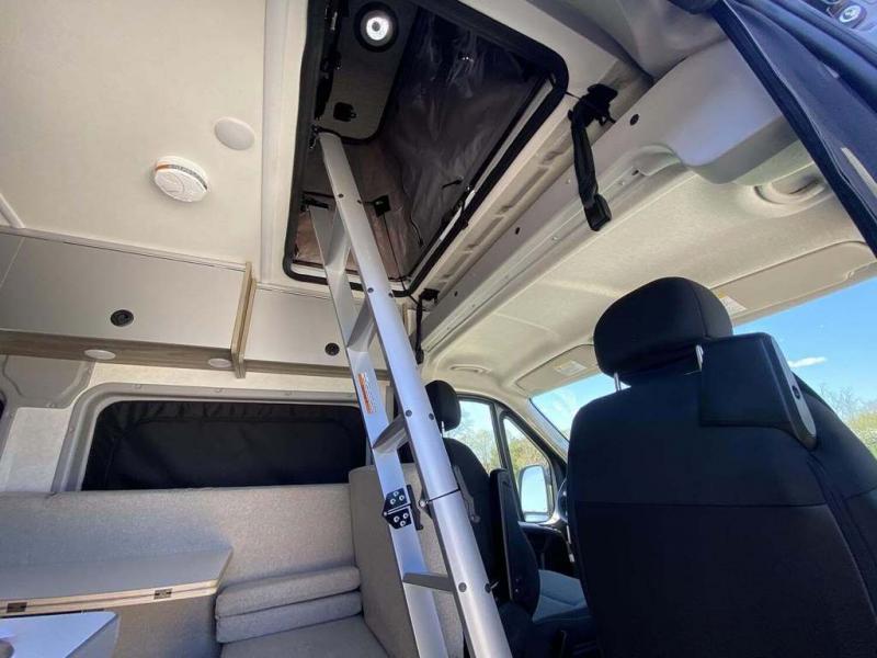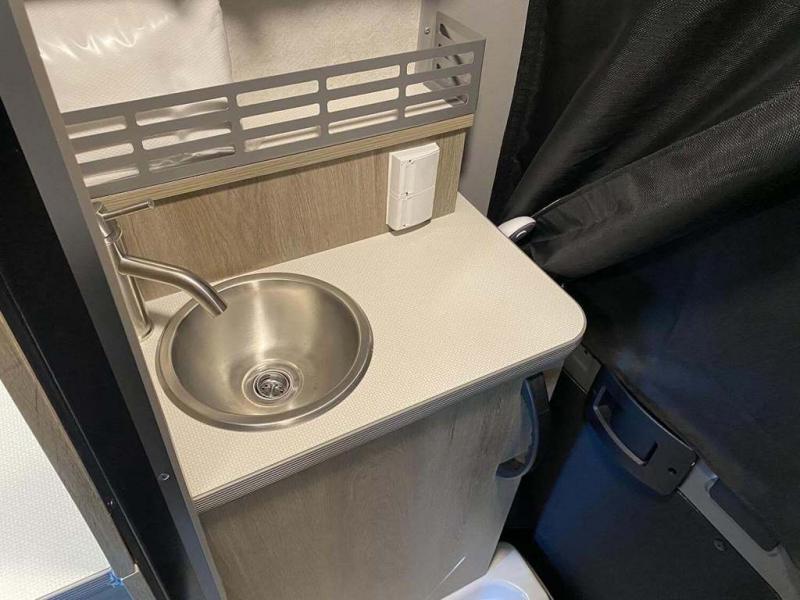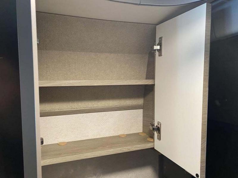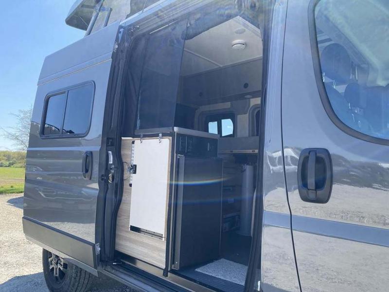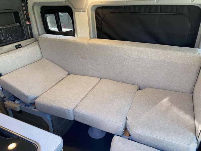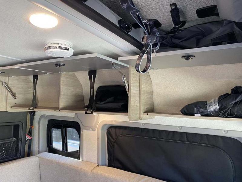 This camper van is perfect for independent travel or if you've got a camping partner to take along with you! The convertible dinette bed can transform into a twin-size bed for one or a double-size bed for two. The three seating modes include a belt mode, sofa mode, or lounge mode for even more comfort. You will find all you need in the kitchen to prepare meals each day, including a two burner range with a glass cover for more counter space and a 3.0 cu. ft. 12V single door compressor-driven refrigerator/freezer for food storage. There is a shower with a wall surround in the rear wet bath, along with a removable cassette toilet, a medicine cabinet with a mirror, and a wardrobe cabinet with added storage. This space could also be used as a mudroom after a day of exploring, or utilize it for storage!