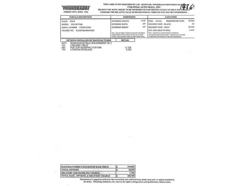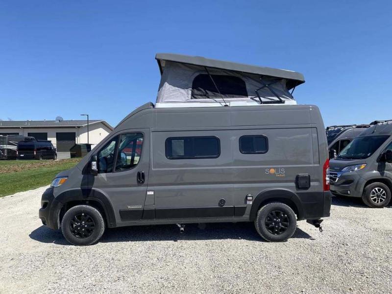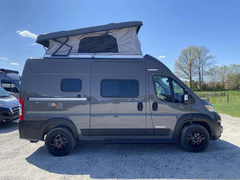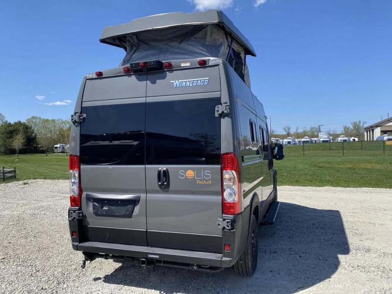 If you want the versatility for your backcountry excursions, and the ability to navigate urban areas, then you need one of these Winnebago Solis Pocket Class B gas motorhomes! A Ram ProMaster 3.6L V6 gas engine with 280HP and a 9-speed automatic transmission power these units to your greatest adventures. Some cab conveniences you will appreciate while driving include a radio/rear view monitor system touch screen, pedestrian automatic emergency braking system, and captain chairs that can slide/swivel/recline and have adjustable headrests. Zippered window coverings give you extra privacy and the heavy duty vinyl flooring throughout is sure to hold up through all of your adventures. A rod and privacy screen is provided for the rear annex to hang your wet clothes or even use as an outdoor shower. Navigate your next adventure with a Solis Pocket!