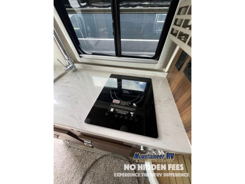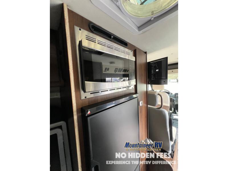 This motorhome has everything you need for a comfortable trip! You can roll out of the corner 49" x 77" bed then easily exit through the rear double doors to catch the beautiful sunrise. Freshen up in the 28" x 51" wet bath with a sliding door then head to the kitchen and grab some eggs from the two door 6.0 cu. ft. compressor-driven refrigerator/freezer then fry them on the single burner induction cooktop. The flip-up countertop extension will make your meal prepping easier and the cold water filtration system ensures you have clean water where ever you go. The two cab seats in the living area have an adjustable/removable table and mount to enjoy your meals. This model also comes with the Pure3 energy management system which has a 3-module lithium-ion energy pack, 3,200 watt inverter, a Bluetooth control module, an energy pack heating system, and a second dedicated alternator powered by the chassis engine!
