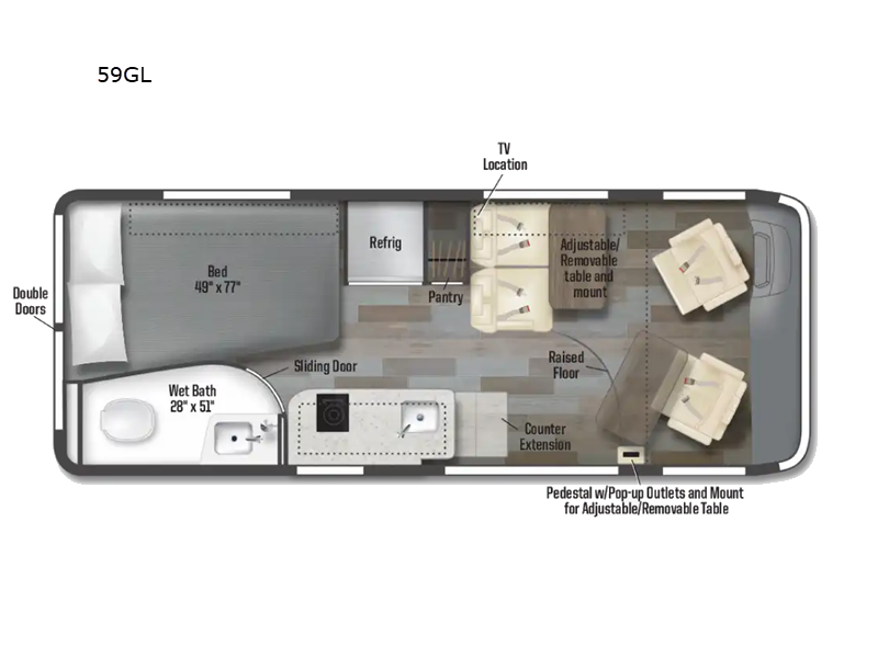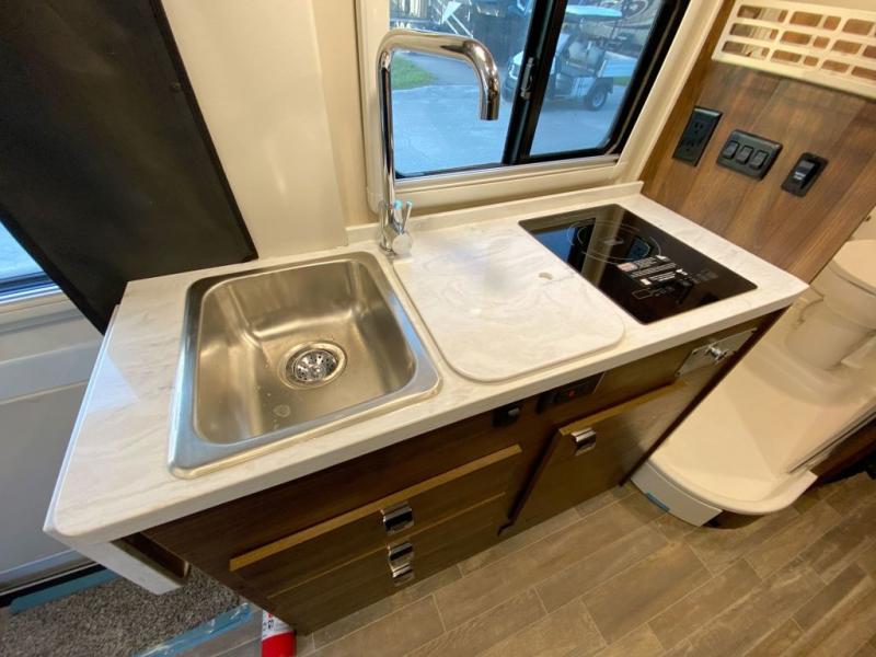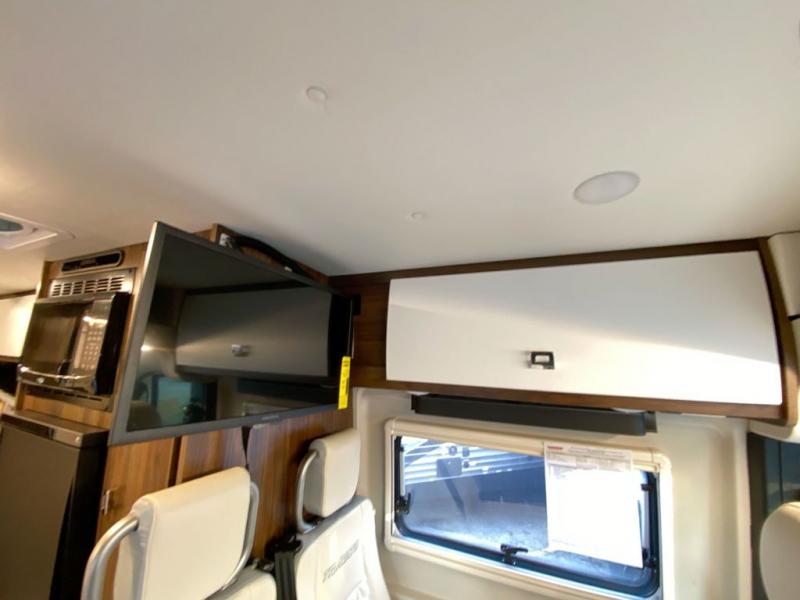 This motorhome has everything you need for a comfortable trip! You can roll out of the corner 49" x 77" bed then easily exit through the rear double doors to catch the beautiful sunrise. Freshen up in the 28" x 51" wet bath with a sliding door then head to the kitchen and grab some eggs from the two door 6.0 cu. ft. compressor-driven refrigerator/freezer then fry them on the single burner induction cooktop. The flip-up countertop extension will make your meal prepping easier and the cold water filtration system ensures you have clean water where ever you go. The two cab seats in the living area have an adjustable/removable table and mount to enjoy your meals. This model also comes with the Pure3 energy management system which has a 3-module lithium-ion energy pack, 3,200 watt inverter, a Bluetooth control module, an energy pack heating system, and a second dedicated alternator powered by the chassis engine!