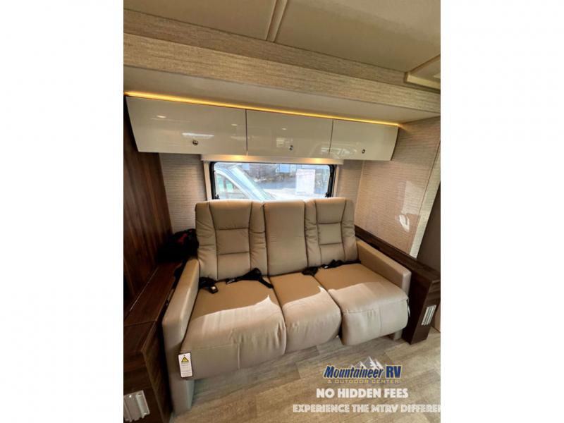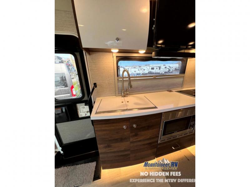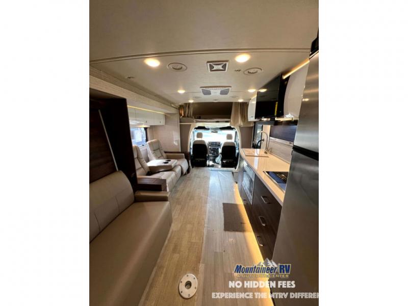 With each View Class C diesel motorhome by Winnebago, you can extend your trips off grid with the industry-leading holding tanks, the two 100W solar panels, the two deep-cycle Group 31 RV batteries, the 2,000W inverter, plus the 3,600W Cummins Onan MicroQuiet LP generator. The insulated sleeper deck is built with premium thermal and acoustic insulation allowing the SuperShell sleeper deck to be more comfortable and relaxing during any season. The View is built on a Mercedes-Benz Sprinter chassis with advanced safety features giving you peace of mind, and the MBUX touchscreen infotainment system has intelligent voice control, navigation, a Wi-Fi hotspot, and more! The interior offers luxury space and simple solutions for storage, plus it also has vinyl flooring and laminate countertops for easy clean-up.