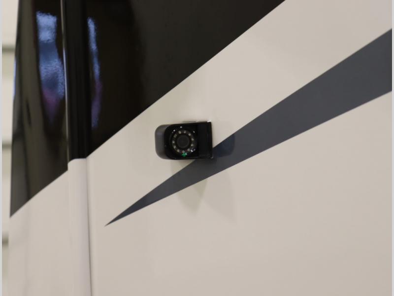 8. Side video camera monitoring system, controlled by dedicated input for three security cameras, and also automatically controlled by the turn signal column