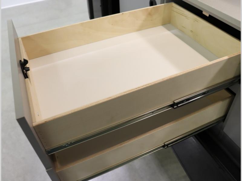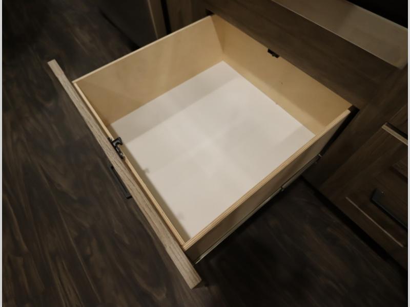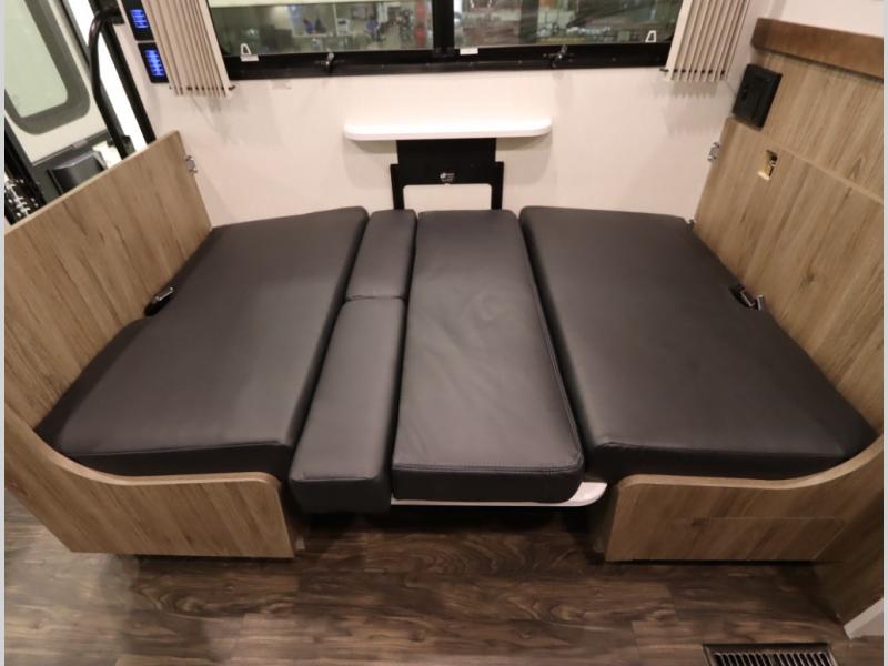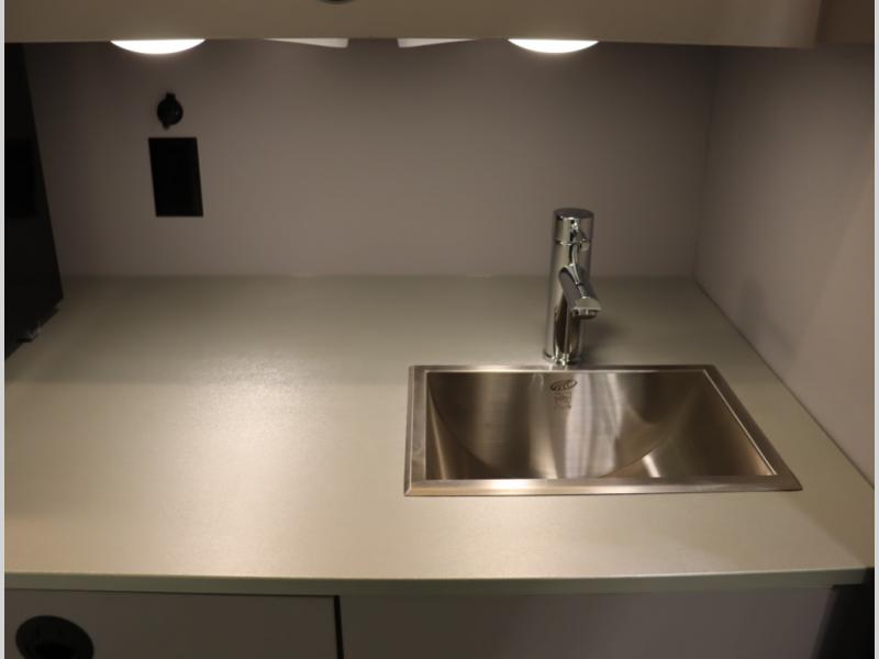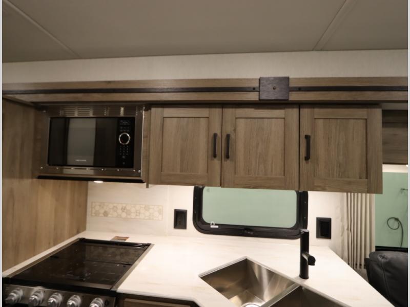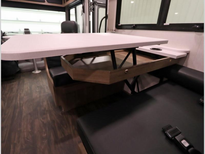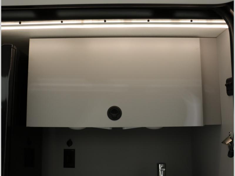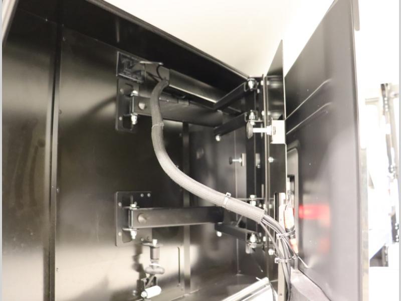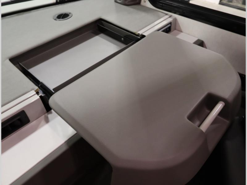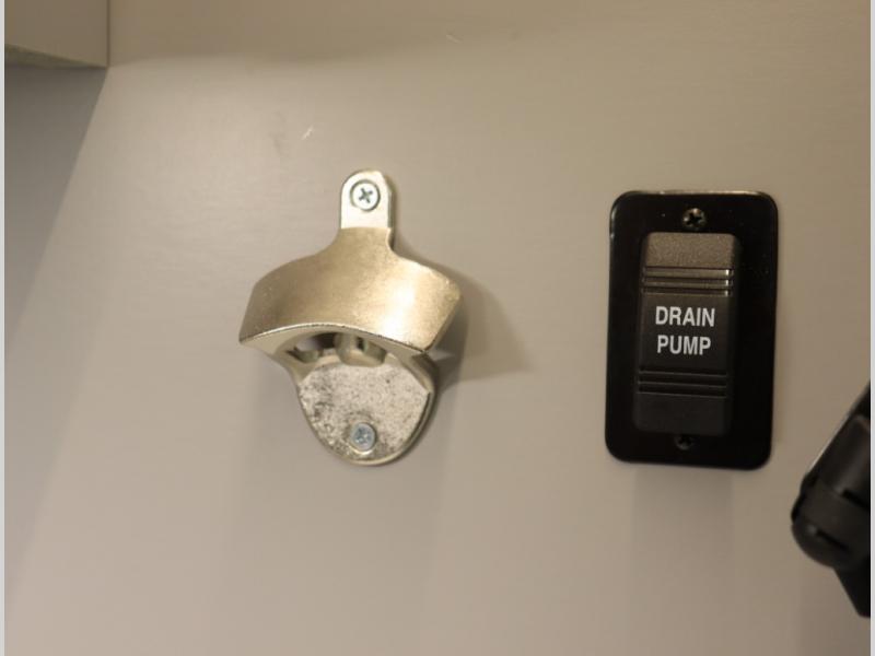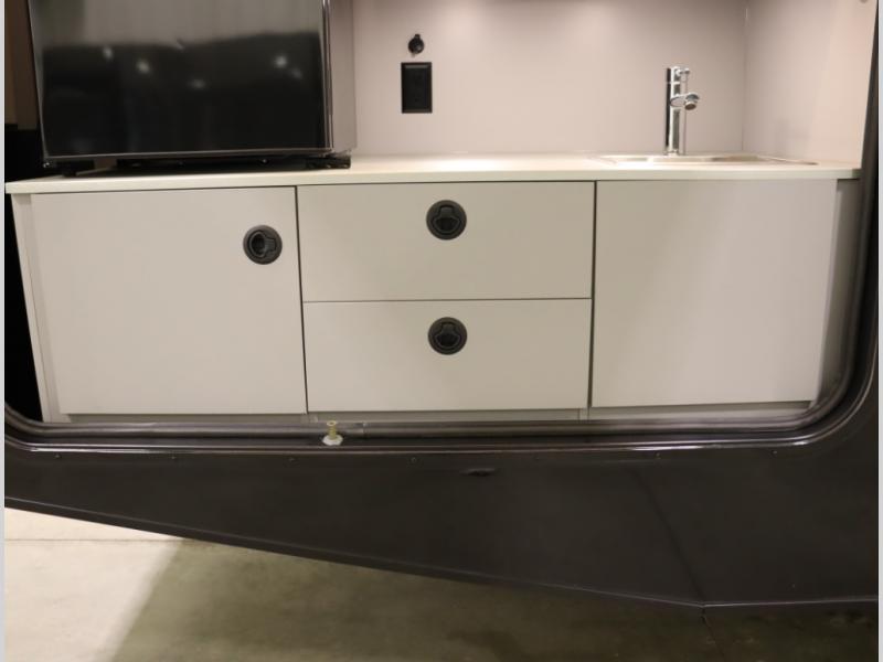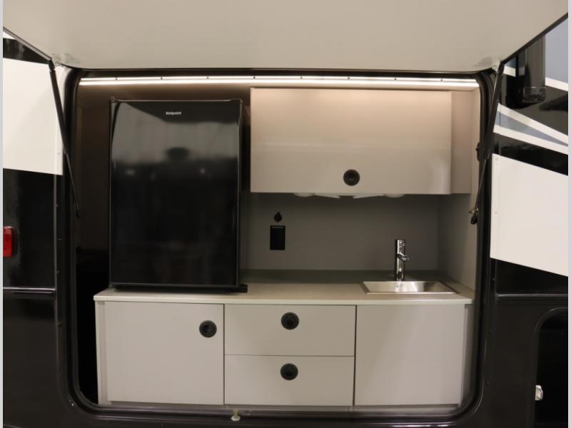 2. Tailgate package, with complete exterior kitchen with more storage than any other competitor with similar exterior kitchens. Tailgate Package includes a refrigerator, 3 drawer cabinet, LED lights, Quick Connect LP hose, easy to clean kitchen sink, wall mounted bottle opener, garbage bag holder, paper towel holder