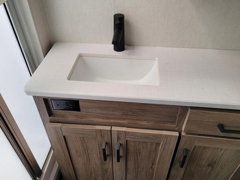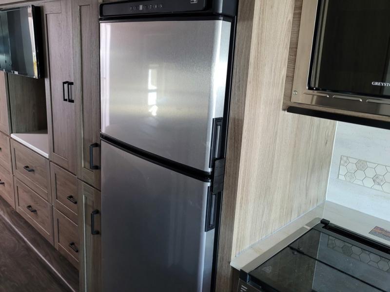 This Class A Vista from Winnebago has tons of great features. You'll love the private bedroom that includes a king bed, dual wardrobes, and a full rear bath with a 36" x 36" shower. An additional half bath is convenient for guests or when you have a big group travelling together. There are plenty of places to sleep, with a standard sofa bed and an optional StudioLoft drop-down bed that is designed to accommodate two additional guests with a generous 600-lb. capacity. The well-equipped kitchen has a three-burner cooktop, stainless steel double sink, 10 cu. ft. refrigerator, and two pantries. An additional coat closet by the door plus exterior lighted storage compartments means there's plenty of room for all your gear.