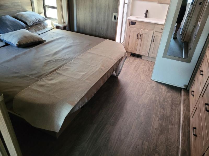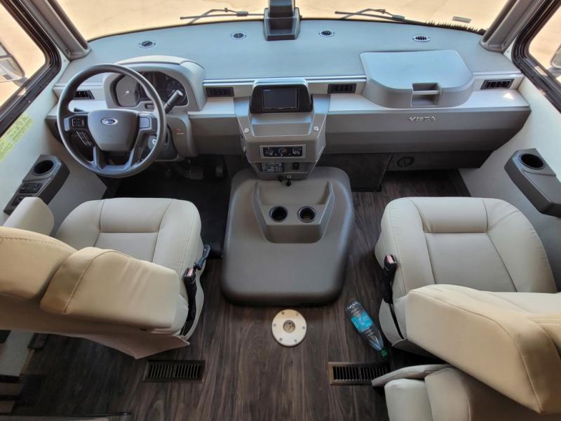 The Winnebago Vista Class A gas motorhome will expand your horizons and provide you a great traveling home on wheels! The Vista is powered by a 7.3L PFI V8 engine on a Ford F53 chassis with 5,000 lbs. of towing capacity which allows you to bring along one of your favorite toys. The adjustable swivel cab seats in front can slide and recline so you can be sure to have the perfect level of comfort in addition to entertainment with the 7" LCD color touch screen that is Sirius XM ready and Bluetooth compatible with Android Auto and Apple CarPlay. The powered blackout roller visor/shade on the front windshield provides extra privacy, and the passenger dash workstation with USB and 12-volt power port lets you get some work done while on the road.