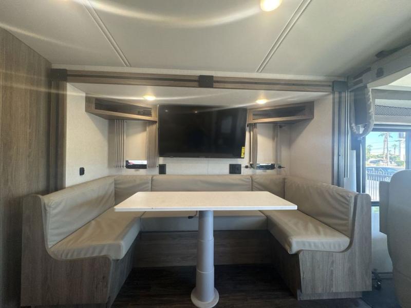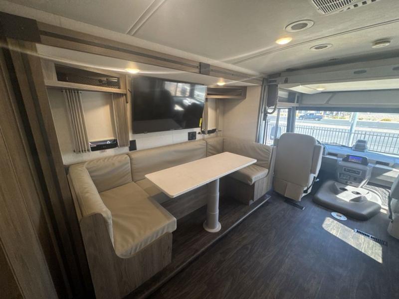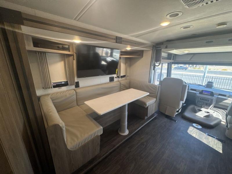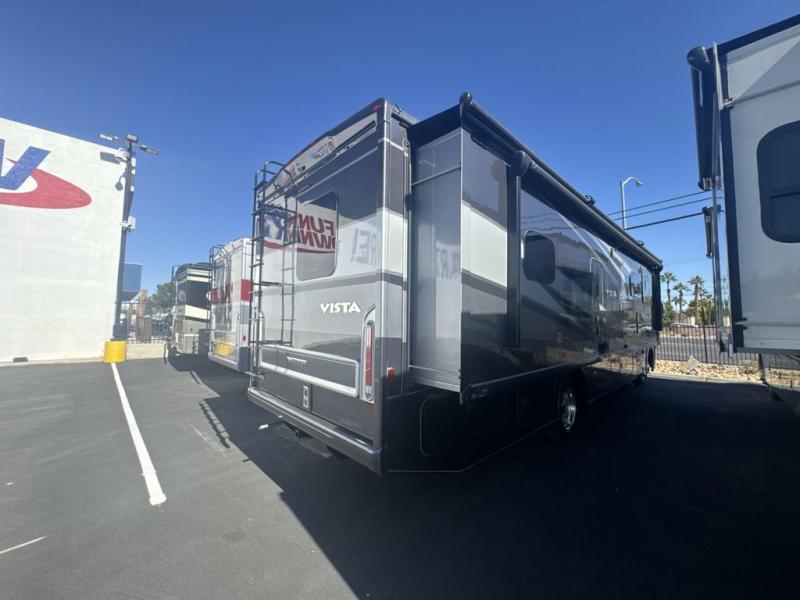 The Winnebago Vista Class A gas motorhome will expand your horizons and provide you a great traveling home on wheels! The Vista is powered by a 7.3L PFI V8 engine on a Ford F53 chassis with 5,000 lbs. of towing capacity which allows you to bring along one of your favorite toys. The adjustable swivel cab seats in front can slide and recline so you can be sure to have the perfect level of comfort in addition to entertainment with the 7" LCD color touch screen that is Sirius XM ready and Bluetooth compatible with Android Auto and Apple CarPlay. The powered blackout roller visor/shade on the front windshield provides extra privacy, and the passenger dash workstation with USB and 12-volt power port lets you get some work done while on the road.