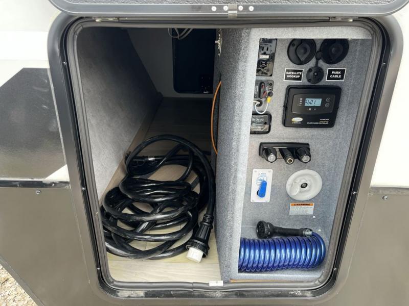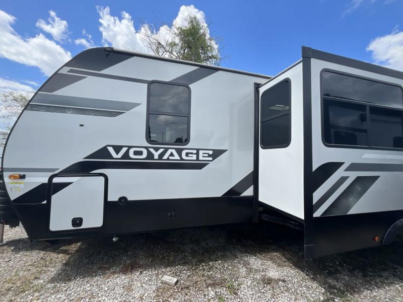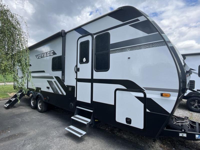 Each Voyage travel trailer by Winnebago Industries Towables includes a 200-watt solar panel with a 30 amp-charge controller and resettable breaker so you can camp off-grid. Also included is a heated and enclosed underbelly with radiant foil insulation for four seasons of travel, 2" thick FILON® MAX fiberglass sidewalls and a painted gel coat front cap with integrated LED lighting, a walk-on roof, plus power stabilizers for easy setup and stability. The interior offers many comforts of home, large windows, LED ceiling lights, ductless flooring throughout, and full kitchen amenities. No voyage is better than the one taken in a Voyage travel trailer! Come choose your model today!