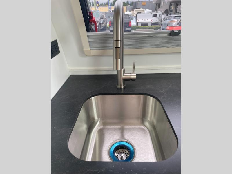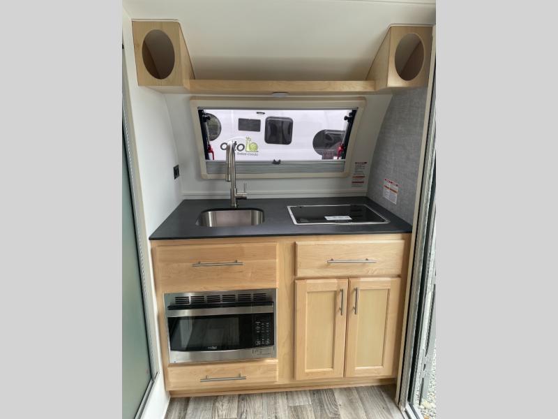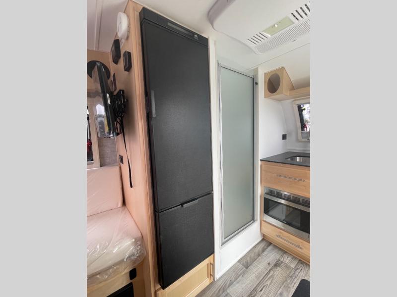 This Little Guy teardrop trailer is designed to deliver the maximum amount of fun in a compact package! This trailer can easily be towed by a small SUV or well-equipped crossover, and it is a tough trailer that offers 15" premium tires, Azdel composite sidewalls, insulated dual-pane windows, an exterior entertainment center with a TV mount, and a friction-hinge entry door. Despite its compact size, this trailer still offers you a spacious interior living space with its 6' interior height. The refrigerator is astonishingly large at 5 cubic feet, so you can store a week's worth of groceries without breaking a sweat. You can even tack on an optional rear vertical stargazer window which allows you to bring more of the outdoors inside. This model has a dry weight ranging from 2,406-2,434 lbs.
