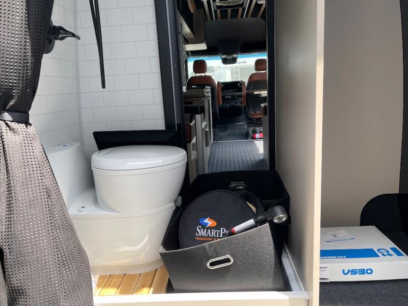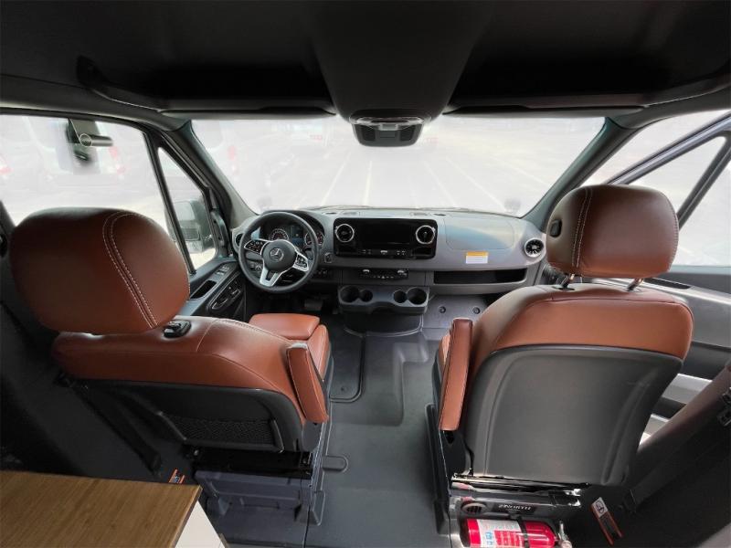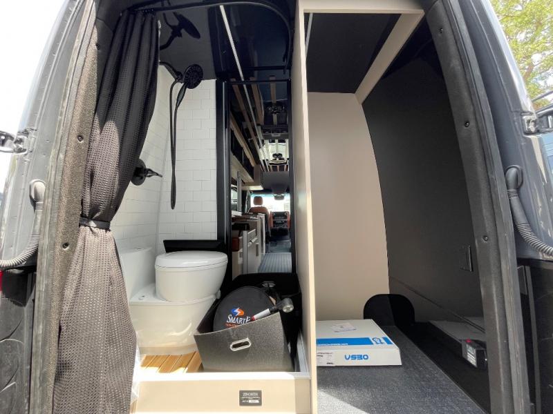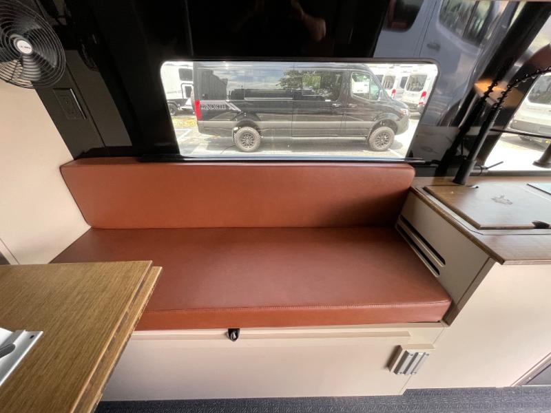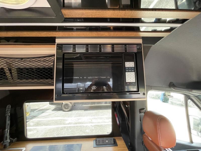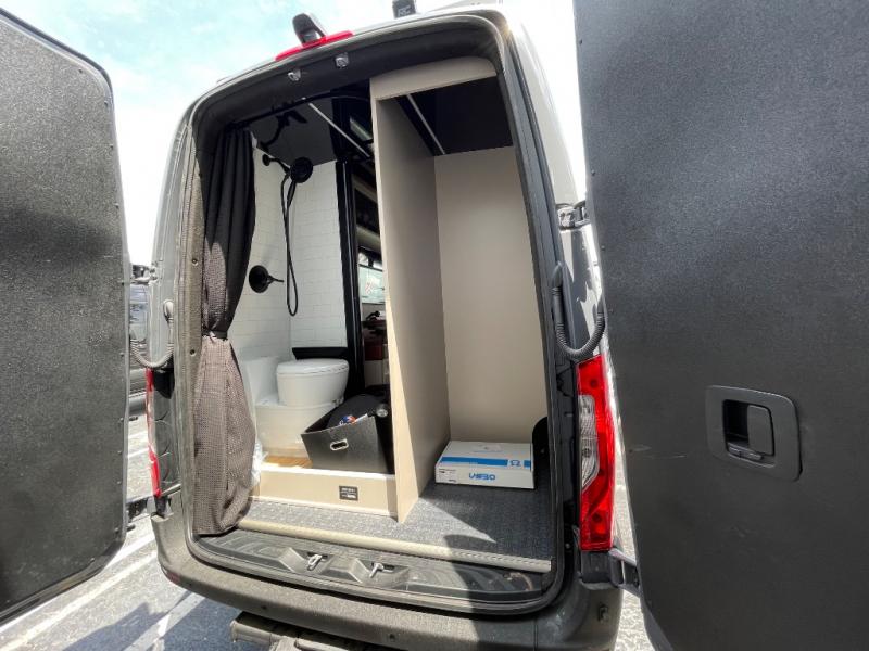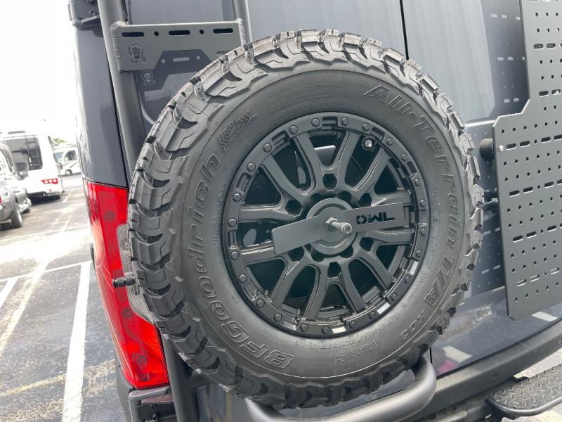 This van features a 170" wheelbase that is ready for adventure when you are! The 170" WB differs from the 144" WB in that it features a wet bath with a cassette toilet, a pantry/wardrobe/storage, plus a gear garage with dual bike racks! The four-wheel drive means you can conquer tough terrain since there are off-road tires, a Nomad Sprinter rear bumper for added protection, and a 3-POD LED light bar that provides up to 10,000 lumens of light output. Inside, you'll find a fishing rod rack, bug screens, and LED accent lighting. The leather dinette converts to a bed/sleeping area where you can dine each day and sleep soundly. In the morning, you can prepare breakfast on the dual burner induction cooktop or in the microwave oven, plus there is an Isotherm drawer refrigerator/freezer for your perishables. You will also love the outdoor shower to wash off your bike or hiking gear, along with a gear garage and a ladder to access the roof!