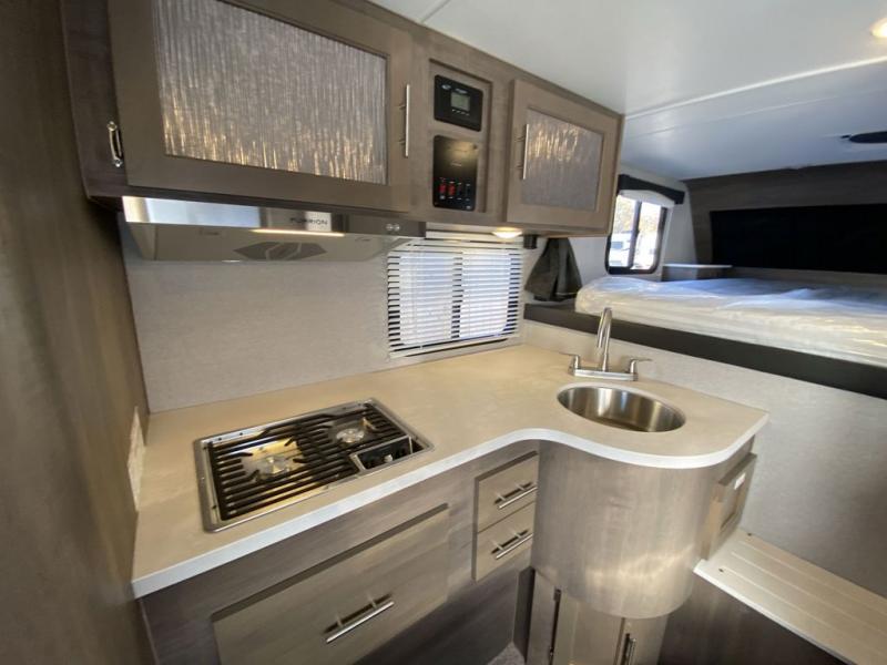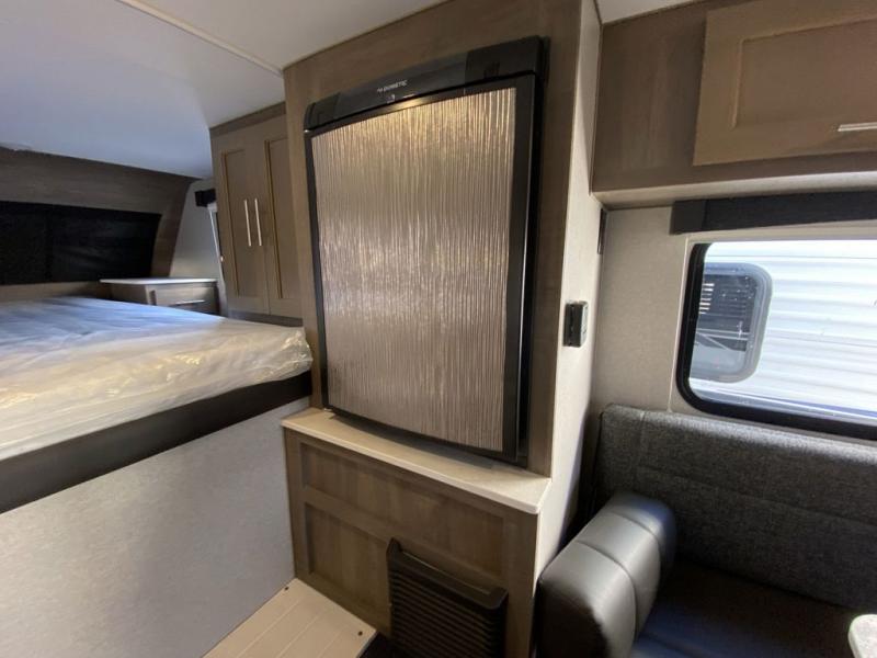 If you have one of today's most popular light-duty full-size super short (5.5'), short (6', 6.5', 6.75') or long (8') bed trucks, then you need to get your hands on this truck camper! It is lightweight, affordable, and has a far forward center of gravity, as well as a comfortable wet bath with a shower, Dometic toilet, power exhaust fan, and dual layer skylight. Get a good night's rest each night on the queen bed and keep your clothes looking their best stored in the wardrobe at the foot of the bed. You can even transform the roll-over sofa into a 40" x 68" bed for more sleeping space. You can fry up the catch of the day on the sealed two burner cooktop with residential grate and keep your beverages cold in the Dometic 3.5 cu. ft. refrigerator/freezer!