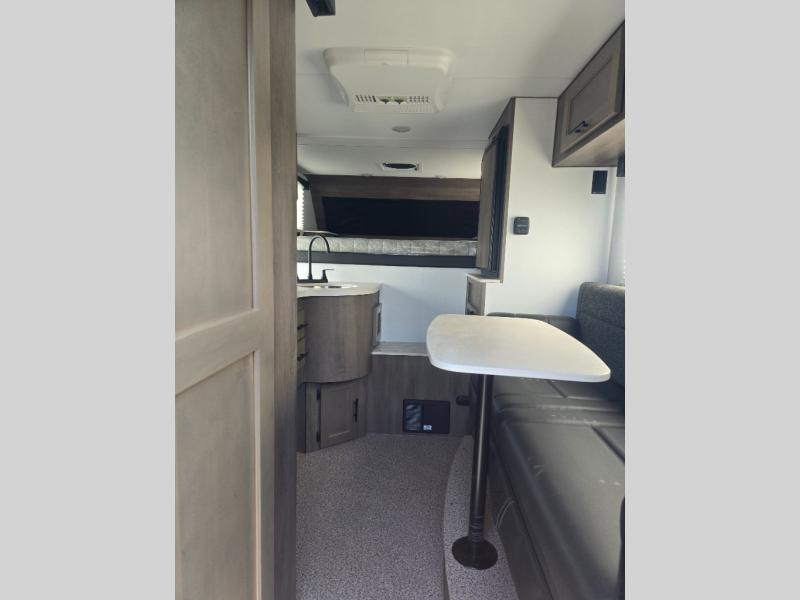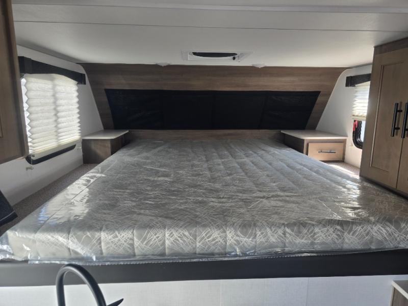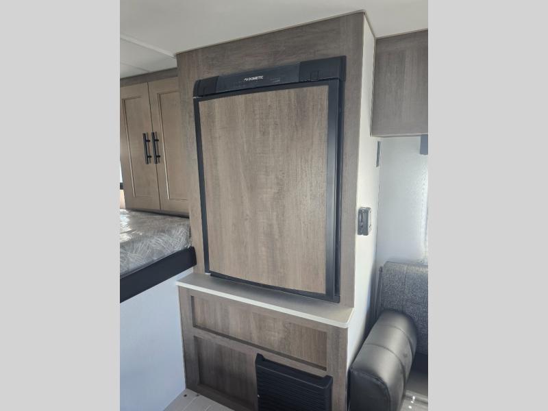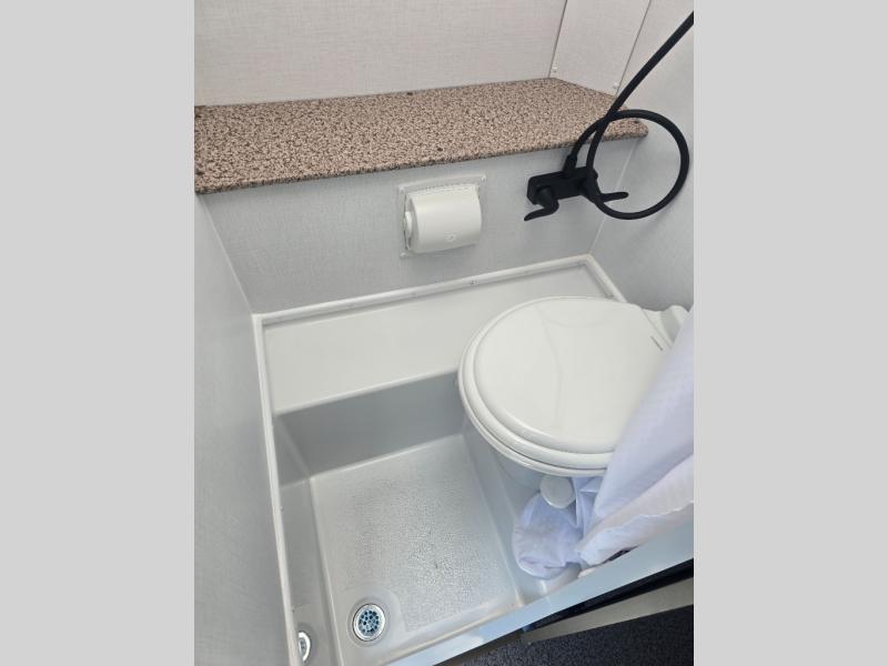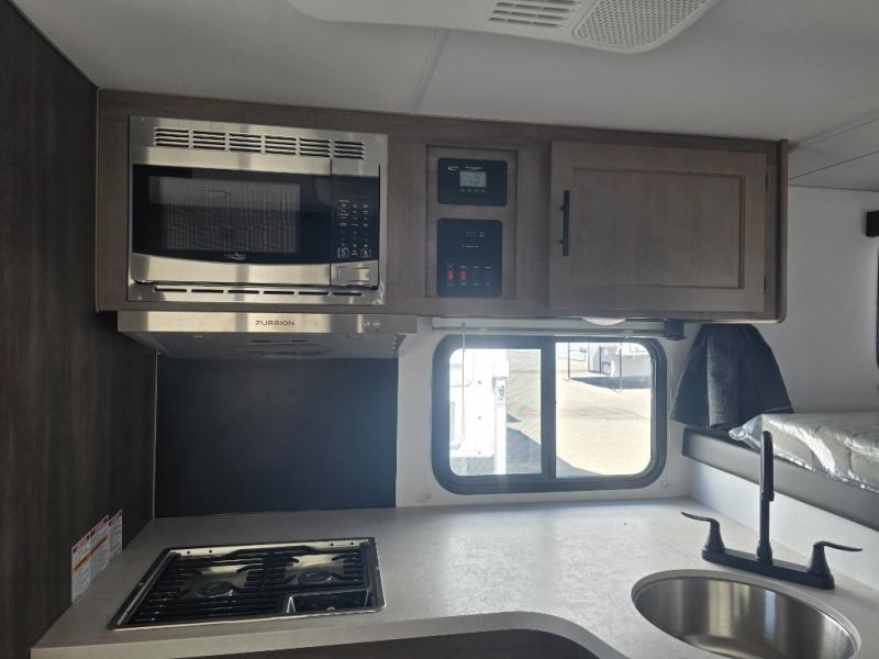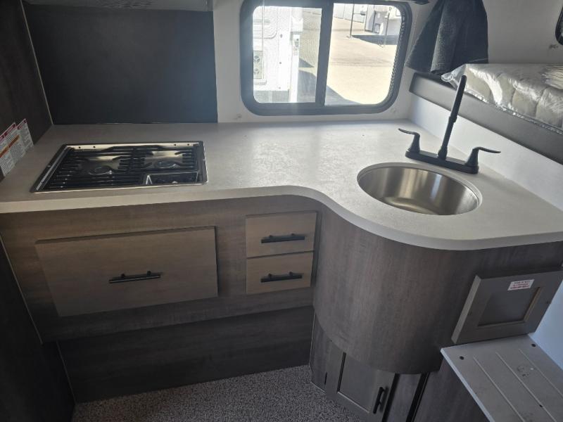 If you have one of today's heavy half-ton and larger long and short box trucks, then you need to get your hands on this truck camper! It is lightweight and affordable, plus it has a comfortable wet bath with a shower, Dometic toilet, power exhaust fan, and skylight. Get a good night's rest each night on the queen bed and keep your clothes looking their best stored in the wardrobe at the foot of the bed. You can even transform the roll-over sofa into a 42" x 68" bed for more sleeping space. You can fry up the catch of the day on the sealed two burner cooktop with residential grate and keep your beverages cold in the Dometic 3.5 cu. ft. refrigerator/freezer!