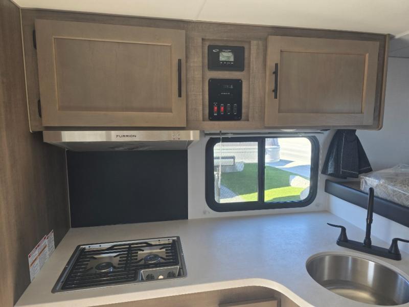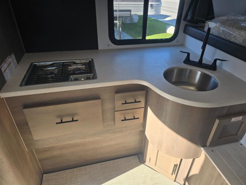 If you have one of today's heavy half-ton and larger long and short box trucks, then you need to get your hands on this truck camper! It is lightweight and affordable, plus it has a comfortable wet bath with a shower, Dometic toilet, power exhaust fan, and skylight. Get a good night's rest each night on the queen bed and keep your clothes looking their best stored in the wardrobe at the foot of the bed. You can even transform the roll-over sofa into a 42" x 68" bed for more sleeping space. You can fry up the catch of the day on the sealed two burner cooktop with residential grate and keep your beverages cold in the Dometic 3.5 cu. ft. refrigerator/freezer!