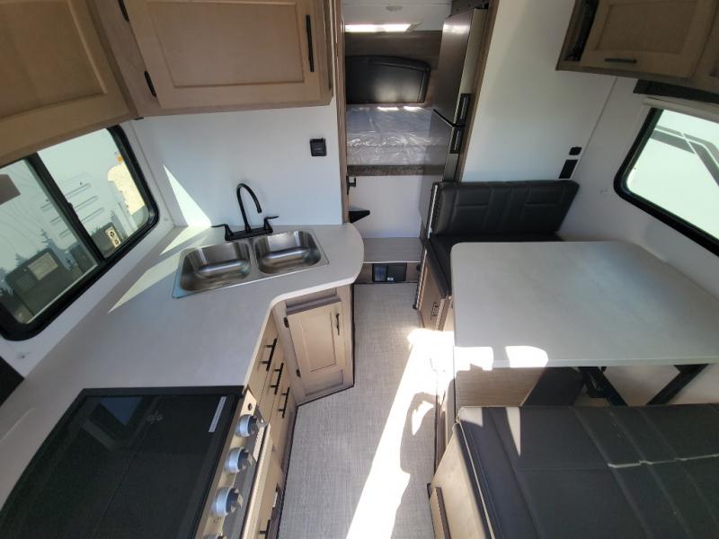 With a 8' 11" length, this truck camper can fit 6' and larger short or long bed trucks! Enjoy a good night's rest on the double density foam queen bed with a mirrored sliding door wardrobe to keep your clothes looking their best. Freshen up each morning in the seamless one-piece fiberglass wet bath with a dual layer skylight above for natural lighting. You can prepare your best home cooked meals with the sealed three burner cooktop with residential grate, easily clean up with the stainless steel double bowl sink, and store your leftovers in the 7 cu. ft. Dometic 2-door refrigerator/freezer. There is even a face-to-face Dream Dinette to eat your meals at and convert into an extra sleeping space. This model also includes the mandatory Elite Option Package that comes with full extension soft closing ball-bearing metal drawer slides, flush mounted LED lights with integrated switches, Lamilux 4000 two-toned high gloss gel coat fiberglass exterior, and more!