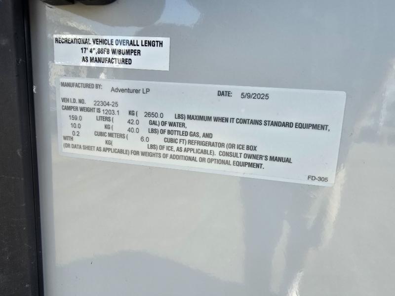 New 2025 Adventurer Manufacturing Inc. Adventurer 86FB Truck Camper