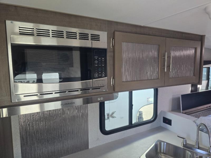 Enjoy each trip in this truck camper that fits 6' and larger short-bed trucks and all long-bed trucks! You can make your meals with the three burner cooktop and large stainless steel oven, store your leftovers in the 7 cu. ft. Dometic 2-door refrigerator/freezer, and clean up with the stainless steel double bowl sink! The Dream Dinette with a bed conversion will allow a guest to sleep over, while you take the front queen bed. There is plenty of storage found throughout, including a double door wardrobe, additional storage around the bed, and overhead cabinets. This model also includes a seamless one-piece fiberglass wet bath, a medicine cabinet, plus a sliding bathroom door that will save on space.