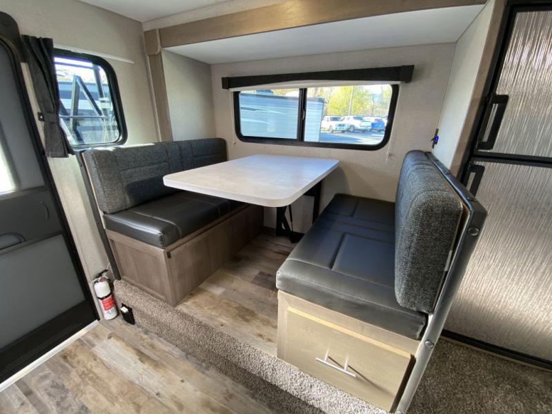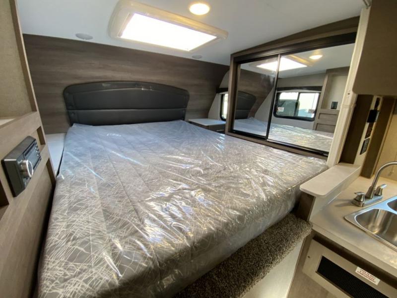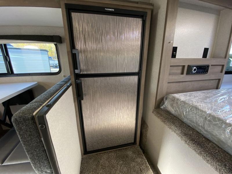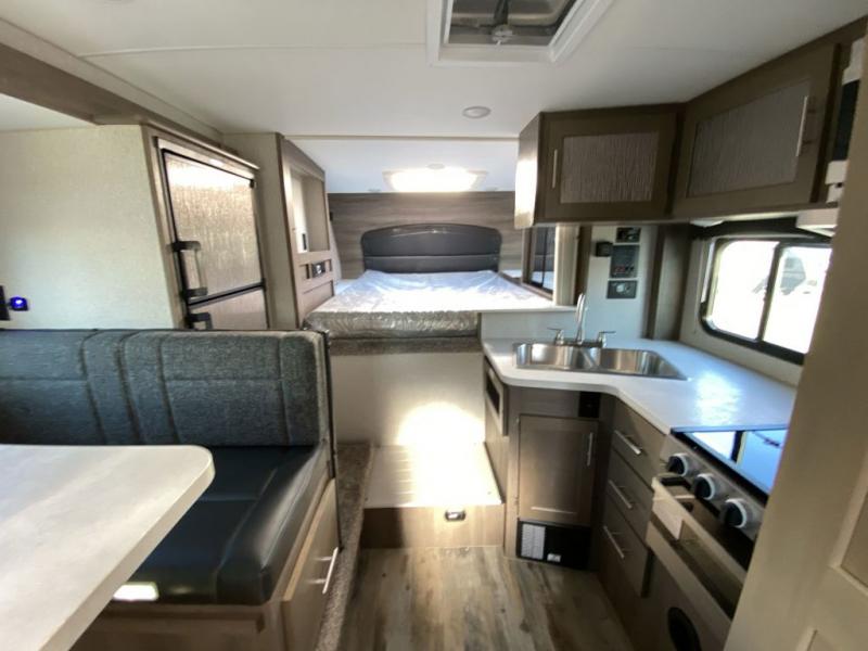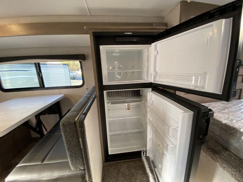 You won't believe the amount of space you'll find in this truck camper that can sleep three to four each night! There is a slide out with a refrigerator and a Dream Dinette that will also convert to a bed for guests. The front queen bed will provide a great night's rest, and you'll enjoy two nightstands, one with a drawer to keep your valuable close by. There is even an entertainment cabinet if you want to add an optional TV! Whip up your best meals with the three burner cooktop and large stainless steel oven, then store leftovers in the 7 cu. ft. Dometic 2-door stainless steel refrigerator/freezer. The seamless one-piece fiberglass wet bath is another feature you are sure to appreciate with its Dometic toilet, dual layer skylight, and 12V power exhaust fan. This model also includes the mandatory Elite Option Package that comes with a 26" friction hinge door with a dead bolt and screen, a 4-season insulation package, LED lights both inside and out, plus more!