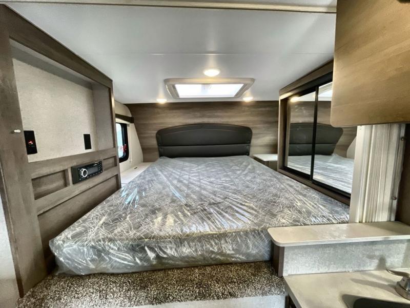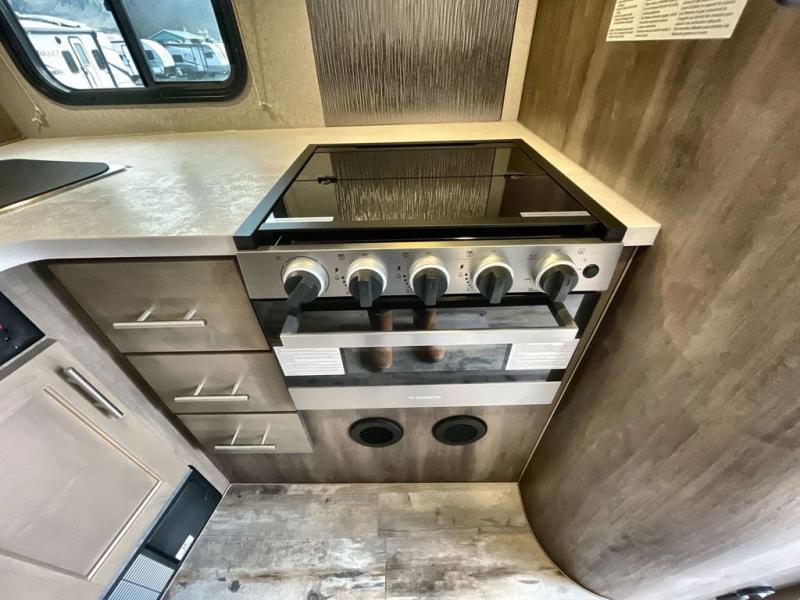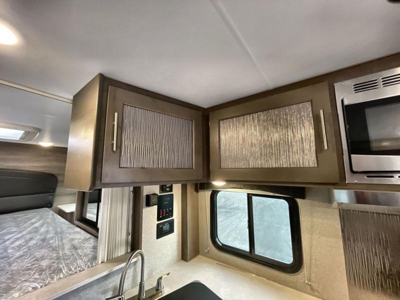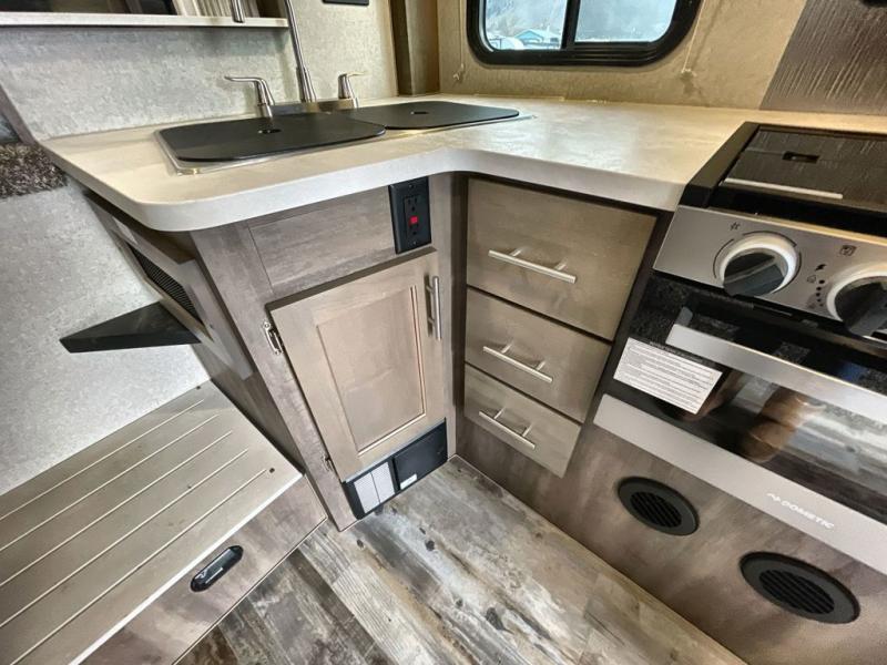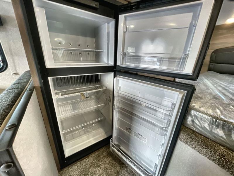 You won't believe the amount of space you'll find in this truck camper that can sleep three to four each night! There is a slide out with a refrigerator and a Dream Dinette that will also convert to a bed for guests. The front queen bed will provide a great night's rest, and you'll enjoy two nightstands, one with a drawer to keep your valuable close by. There is even an entertainment cabinet if you want to add an optional TV! Whip up your best meals with the three burner cooktop and large stainless steel oven, then store leftovers in the 7 cu. ft. Dometic 2-door stainless steel refrigerator/freezer. The seamless one-piece fiberglass wet bath is another feature you are sure to appreciate with its Dometic toilet, dual layer skylight, and 12V power exhaust fan. This model also includes the mandatory Elite Option Package that comes with a 26" friction hinge door with a dead bolt and screen, a 4-season insulation package, LED lights both inside and out, plus more!