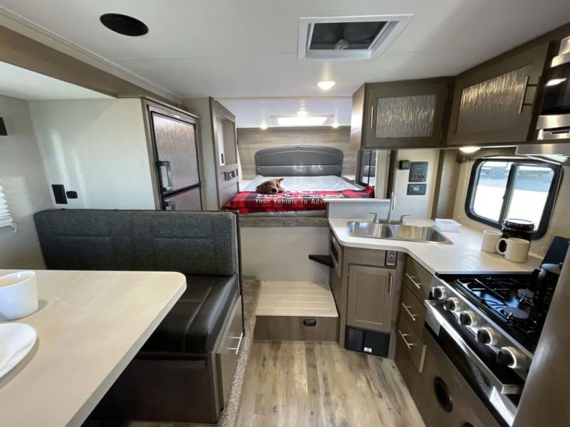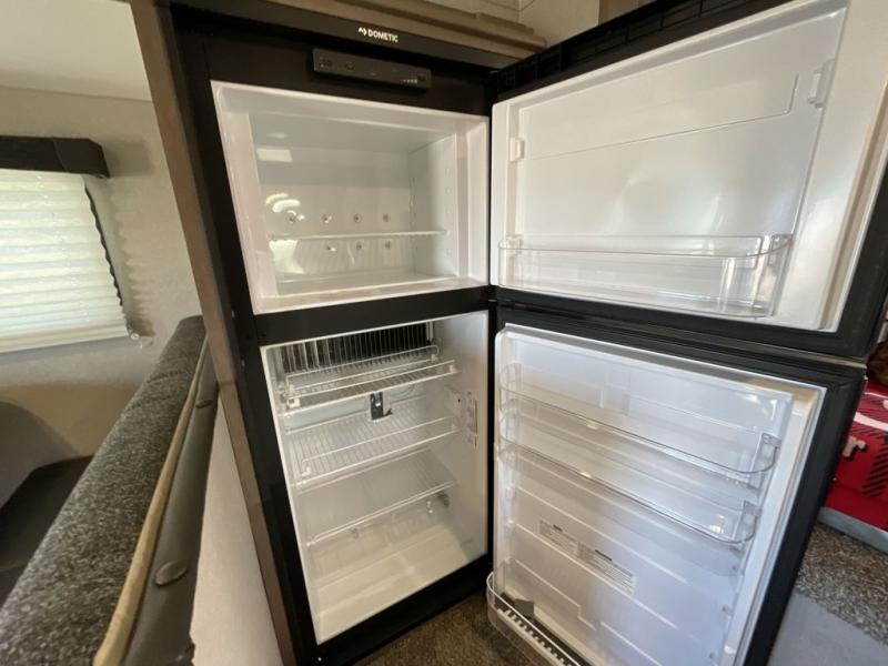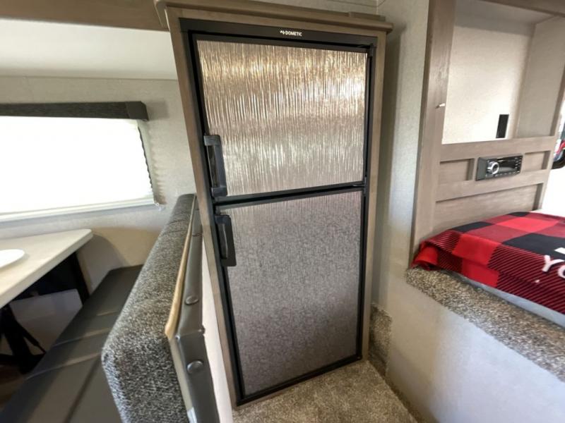 You won't believe the amount of space you'll find in this truck camper that can sleep three to four each night! There is a slide out with a refrigerator and a Dream Dinette that will also convert to a bed for guests. The front queen bed will provide a great night's rest, and you'll enjoy two nightstands, one with a drawer to keep your valuable close by. There is even an entertainment cabinet if you want to add an optional TV! Whip up your best meals with the three burner cooktop and large stainless steel oven, then store leftovers in the 7 cu. ft. Dometic 2-door stainless steel refrigerator/freezer. The seamless one-piece fiberglass wet bath is another feature you are sure to appreciate with its Dometic toilet, dual layer skylight, and 12V power exhaust fan. This model also includes the mandatory Elite Option Package that comes with a 26" friction hinge door with a dead bolt and screen, a 4-season insulation package, LED lights both inside and out, plus more!