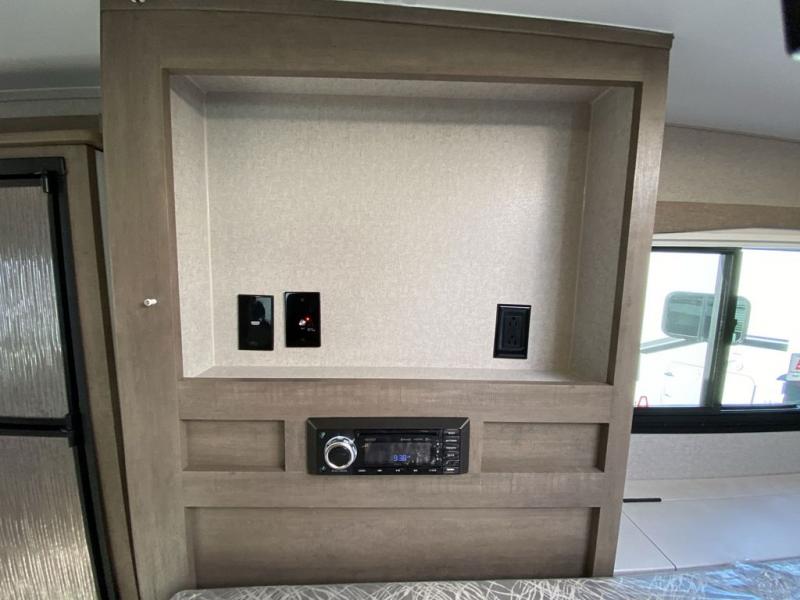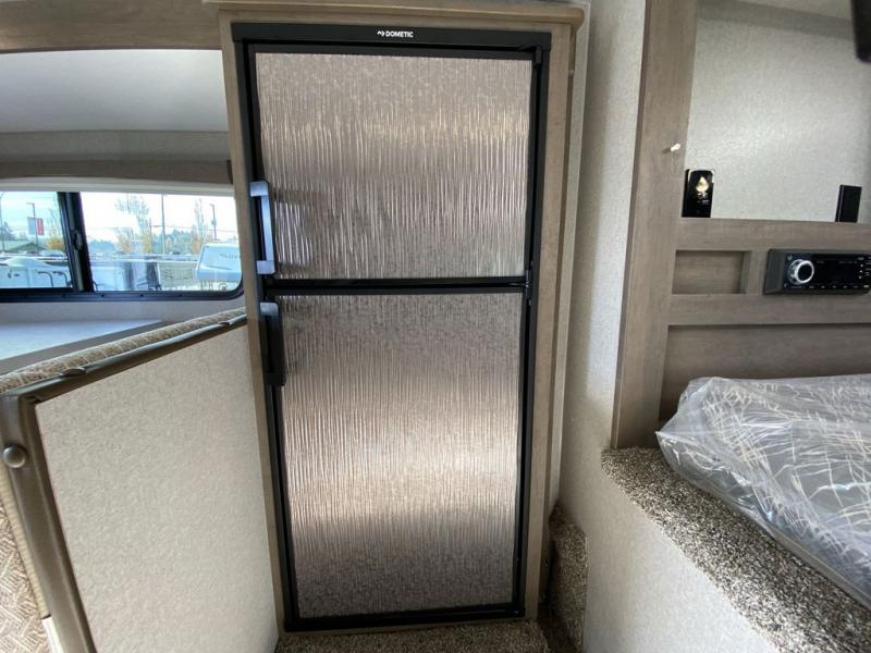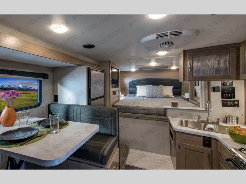 You won't believe the amount of space you'll find in this truck camper that can sleep three to four each night! There is a slide out with a refrigerator and a Dream Dinette that will also convert to a bed for guests. The front queen bed will provide a great night's rest, and you'll enjoy two nightstands, one with a drawer to keep your valuable close by. There is even an entertainment cabinet if you want to add an optional TV! Whip up your best meals with the three burner cooktop and large stainless steel oven, then store leftovers in the 7 cu. ft. Dometic 2-door stainless steel refrigerator/freezer. The seamless one-piece fiberglass wet bath is another feature you are sure to appreciate with its Dometic toilet, dual layer skylight, and 12V power exhaust fan. This model also includes the mandatory Elite Option Package that comes with a 26" friction hinge door with a dead bolt and screen, a 4-season insulation package, LED lights both inside and out, plus more!