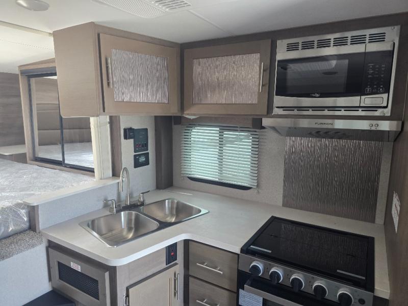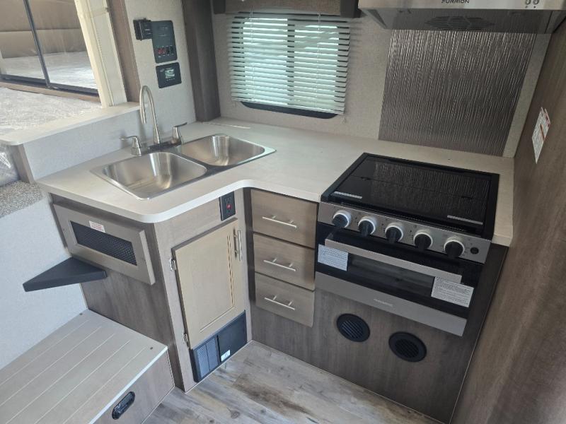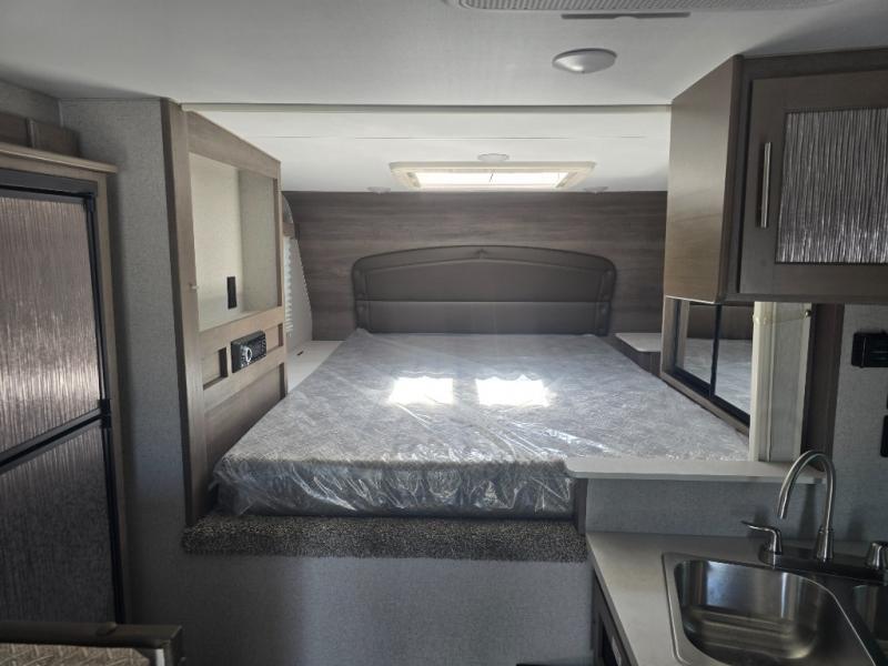 You won't believe the amount of space you'll find in this truck camper that can sleep three to four each night! There is a slide out with a refrigerator and a Dream Dinette that will also convert to a bed for guests. The front queen bed will provide a great night's rest, and you'll enjoy two nightstands, one with a drawer to keep your valuable close by. Whip up your best meals with the three burner cooktop and large stainless steel oven, then store leftovers in the 7 cu. ft. Dometic 2-door stainless steel refrigerator/freezer. The seamless one-piece fiberglass wet bath is another feature you are sure to appreciate with its Dometic toilet, dual layer skylight, and 12V power exhaust fan.