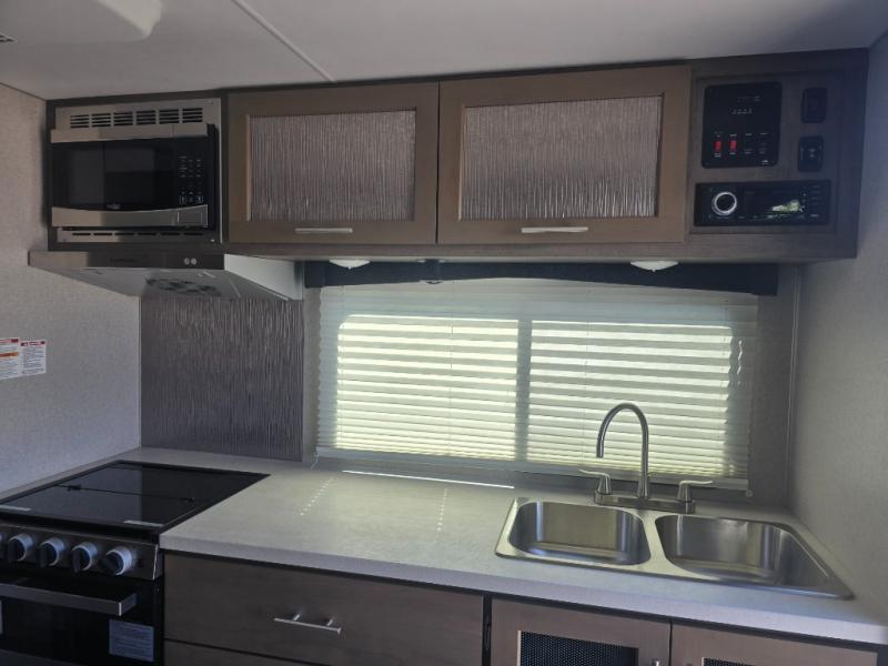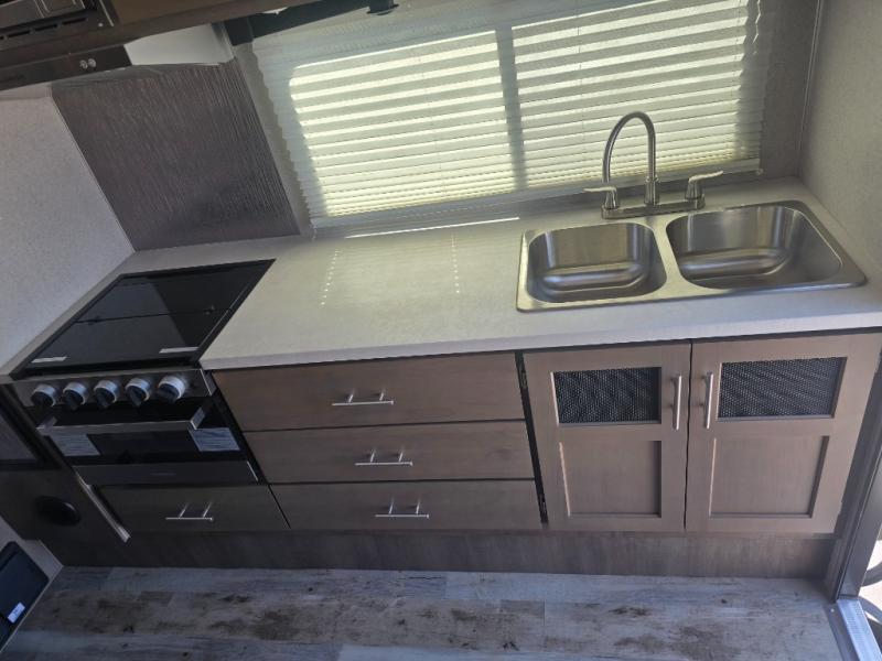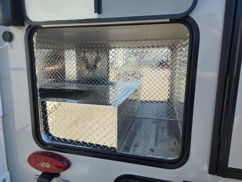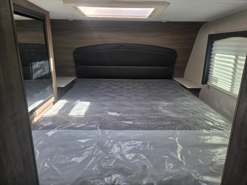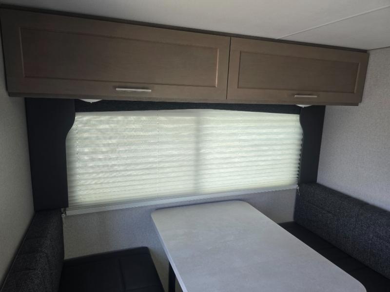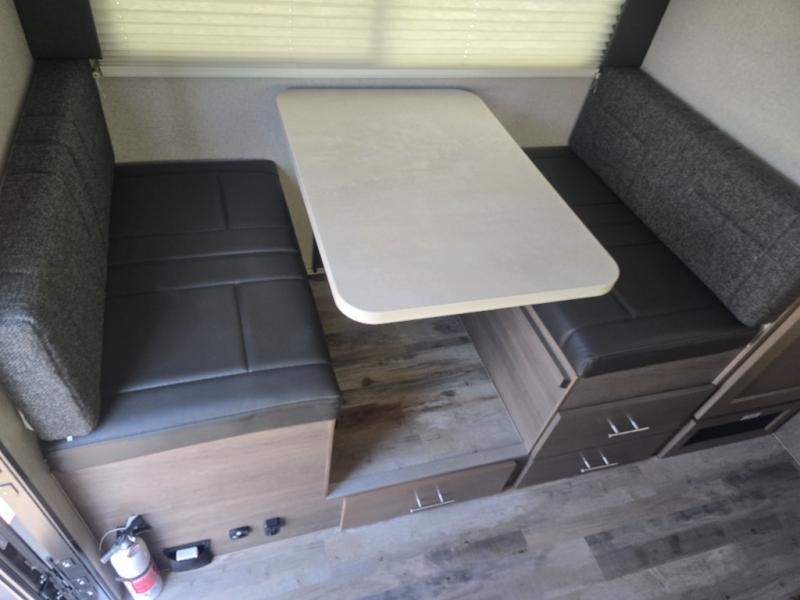 This truck camper incorporates the largest wet bath in the industry and the largest counter space without a slide! It can fit 6.5' and larger short bed trucks and all 8' long bed trucks. The front double density foam queen bed offers a comfortable place to lay your head at night and has a mirrored sliding door wardrobe for your clothes and nightstands to set a glass of water. You can even transform the Dream Dinette into an extra sleeping space when you aren't enjoying a delicious meal that was prepared with the sealed three burner cooktop with residential grate.