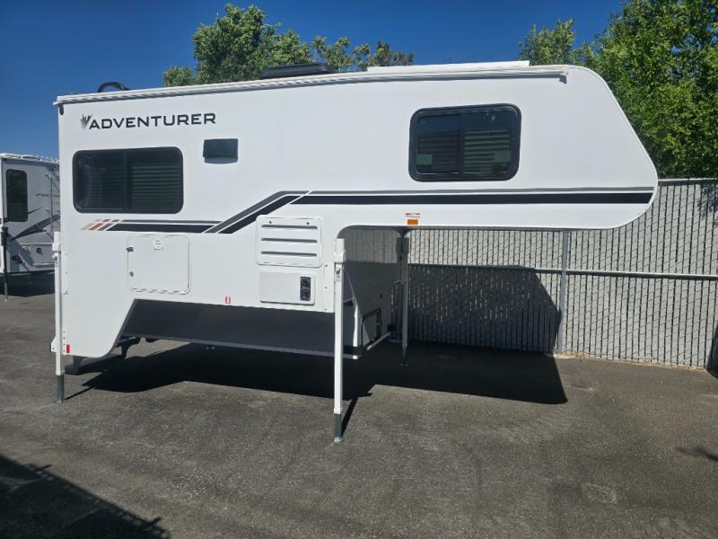 Each one of these Adventurer Manufacturing Inc. Adventurer truck campers is made to last with true four-season insulation and premium construction materials. The TRU weight transparency sticker lets you know exactly what you're getting when you choose these truck campers, and the Next Generation Happijac, manual jacks will make set up easier than ever. There are many interior comforts, including seamless edge countertops, a stainless steel sink, ample storage space, and more! There are also available options to choose to further customize your truck camper, some come take a look!