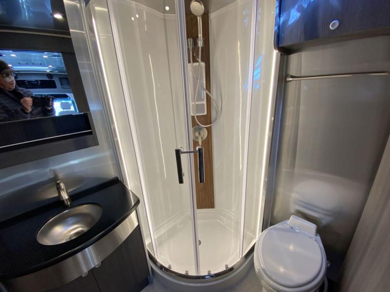 Premium materials, modern finishes, and carefully considered details define the interior. The well-appointed galley includes high-end appliances, solid-surface countertops, and ample storage, making it easy to enjoy gourmet meals on the road. A generously sized bathroom with upscale fixtures and a separate shower elevates everyday comfort and sets the Atlas apart from traditional Class B motorhomes.