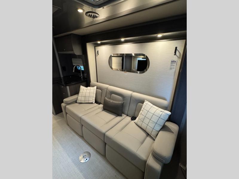 Power Slide-Out Murphy Suite: At the heart of the Atlas is a power slide-out with a fold-down Murphy bed and a plush residential-style sofa, offering unmatched space and comfort in a compact footprint.