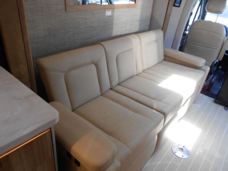 With the Atlas Class B+ diesel motorhome by Airstream, you not only get an enduring Airstream design, conveniences and luxury features, but also the proven Mercedes-Benz safety systems and performance. The coach is built with Azdel composite roof, floor, and wall material, a vacuum-bonded aluminum framed floor, radius walls, a fiberglass crowned roof for extra headroom, trimless smooth fiberglass body seams, and molded fiberglass front and rear caps. And the Mercedes-Benz 2.0L 4-cyliner high-output diesel engine will power your many excursions! The main cabin offers adjustable LED lighting, flush-mount cabinet hardware and soft close doors, a Froli ergonomic bed support system for a good night's sleep. You will enjoy Ultraleather seating, USB charging ports for your electronics, marine woven synthetic flooring, and matte finish laminate cabinetry to mention a few highlights. There are also decor options to choose from, including the optional Tommy Bahama Special Edition that will bring the island style to life!