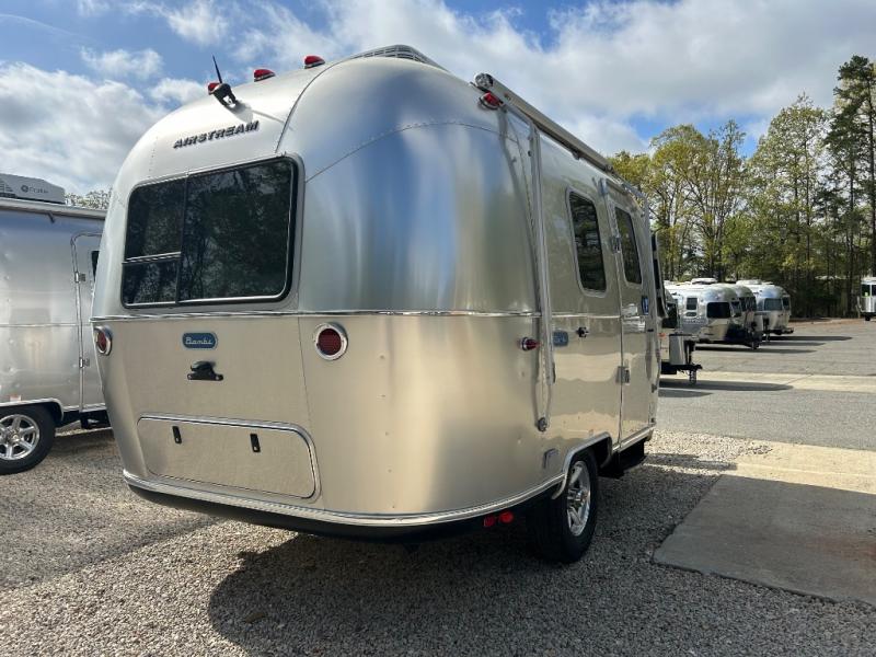The lightweight, easy-to-maneuver Bambi travel trailer by Airstream is your ticket to outdoor fun and adventure. The panoramic front windows with blackout shades will provide natural lighting during the day, and privacy at night, and the seamless vinyl flooring will be easy to keep clean. Each model includes an efficient A/C with a heat strip, roll top overhead cabinets, and Performatex dinette cushions that are stain resistant. You will appreciate the 12V USB-A and USB-C ports to keep your devices charged, and the 24" 12V HDTV will provide entertainment when the weather isn't cooperating. The Bambi travel trailers also include a powered hitch jack with a light, roller shades, and an optional solar charging system for off-grid capabilities!