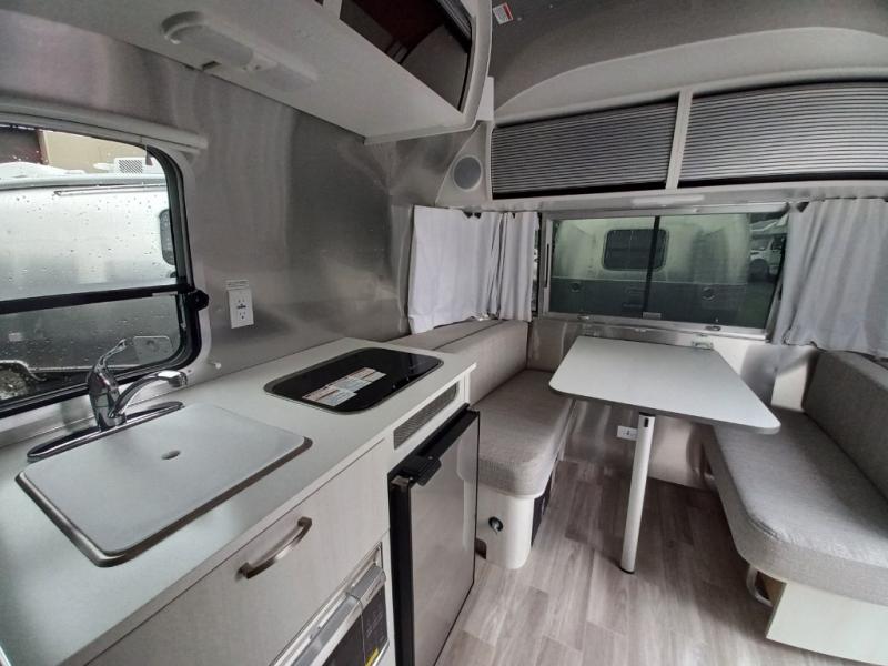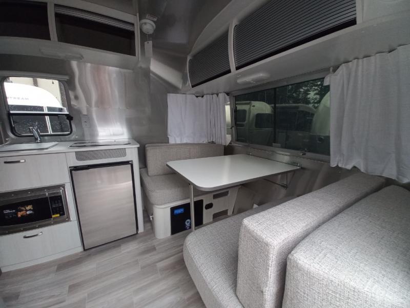 The lightweight, easy-to-maneuver Bambi travel trailer by Airstream is your ticket to outdoor fun and adventure. The panoramic front windows with blackout shades will provide natural lighting during the day, and privacy at night, and the seamless vinyl flooring will be easy to keep clean. Each model includes an efficient A/C with a heat strip, roll top overhead cabinets, and Performatex dinette cushions that are stain resistant. You will appreciate the 12V USB-A and USB-C ports to keep your devices charged, and the 24" 12V HDTV will provide entertainment when the weather isn't cooperating. The Bambi travel trailers also include a powered hitch jack with a light, roller shades, and an optional solar charging system for off-grid capabilities!