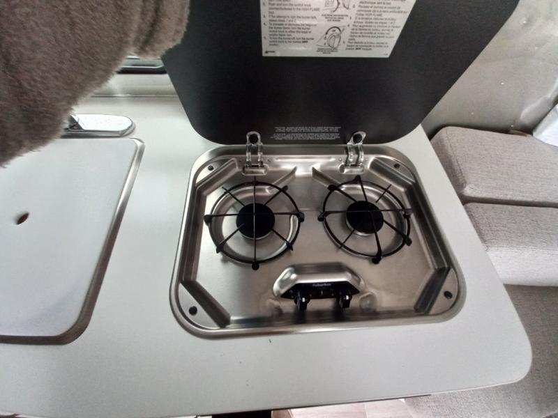 With a 16' 1" exterior length, you'll have no trouble at all getting in a out of campsites with this travel trailer. Once you've parked for the weekend, set up the manual ZipDee patio awning, then enjoy a cold drink in your camp chairs. You can head inside to prepare lunch on the two burner cooktop, or use the microwave oven. There is a stainless steel sink to clean your dishes in and a 3.1 cu. ft. 12V refrigerator for your perishables. The convenient wet bath on board allows you to stay clean throughout your adventures, and you'll find tons of storage space for your belongings. When you're ready to catch some ZZZ's, the pillow top memory foam mattress is sure to bring comfort, while your guests convert the dinette to comfortable sleeping space!