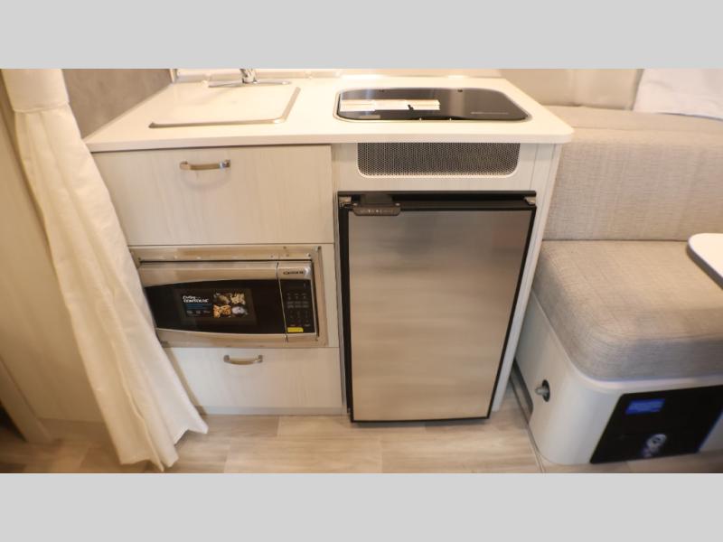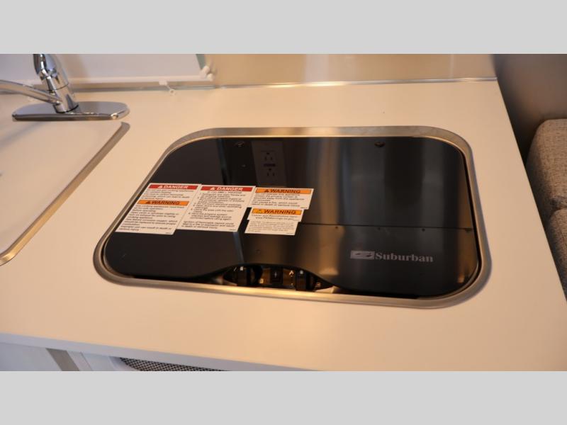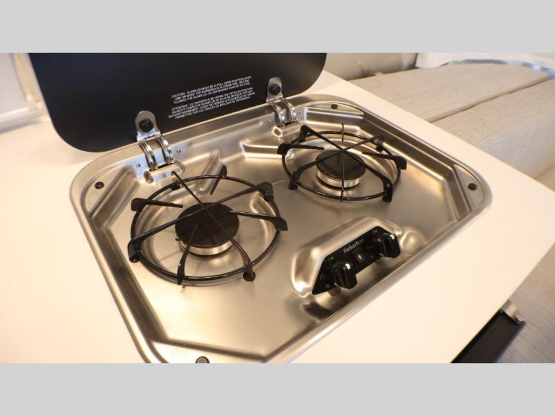With a 16' 1" exterior length, you'll have no trouble at all getting in a out of campsites with this travel trailer. Once you've parked for the weekend, set up the manual ZipDee patio awning, then enjoy a cold drink in your camp chairs. You can head inside to prepare lunch on the two burner cooktop, or use the microwave oven. There is a stainless steel sink to clean your dishes in and a 3.1 cu. ft. 12V refrigerator for your perishables. The convenient wet bath on board allows you to stay clean throughout your adventures, and you'll find tons of storage space for your belongings. When you're ready to catch some ZZZ's, the pillow top memory foam mattress is sure to bring comfort, while your guests convert the dinette to comfortable sleeping space!