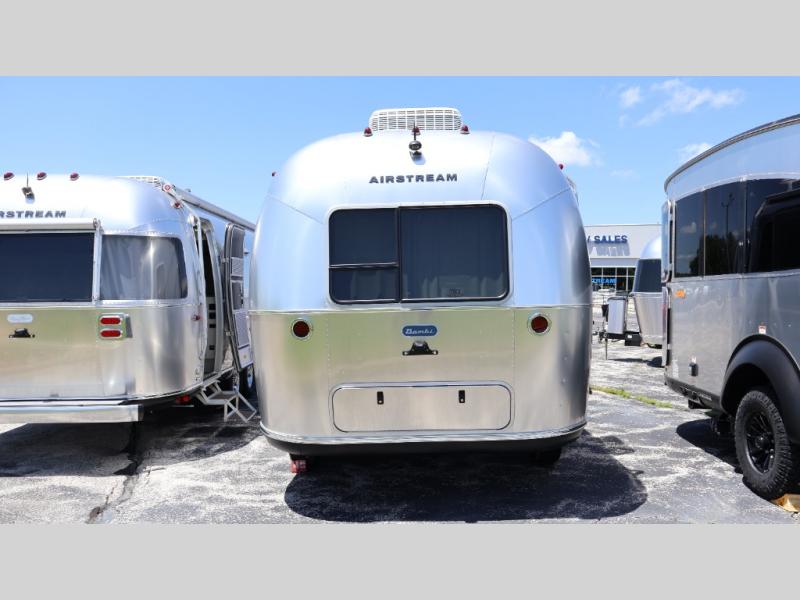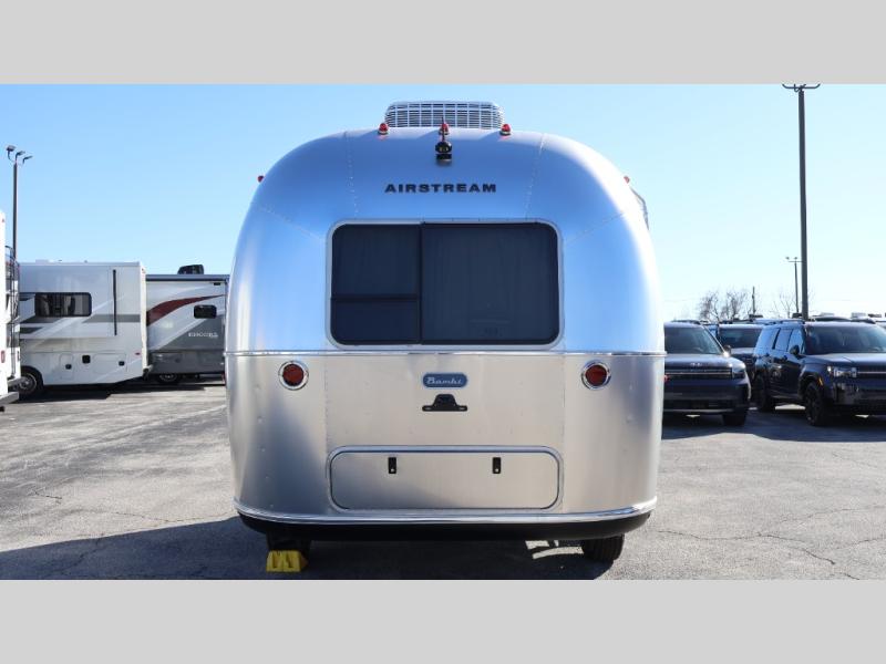The lightweight, easy-to-maneuver Bambi travel trailer by Airstream is your ticket to outdoor fun and adventure. The panoramic front windows with blackout shades will provide natural lighting during the day, and privacy at night, and the seamless vinyl flooring will be easy to keep clean. Each model includes an efficient A/C with a heat strip, roll top overhead cabinets, and Performatex dinette cushions that are stain resistant. You will appreciate the 12V USB-A and USB-C ports to keep your devices charged, and the 24" 12V HDTV will provide entertainment when the weather isn't cooperating. The Bambi travel trailers also include a powered hitch jack with a light, roller shades, and an optional solar charging system for off-grid capabilities!