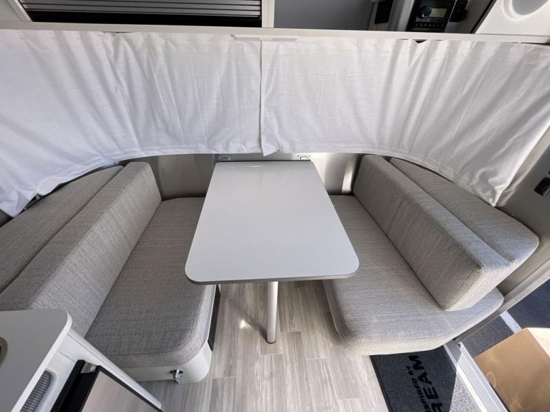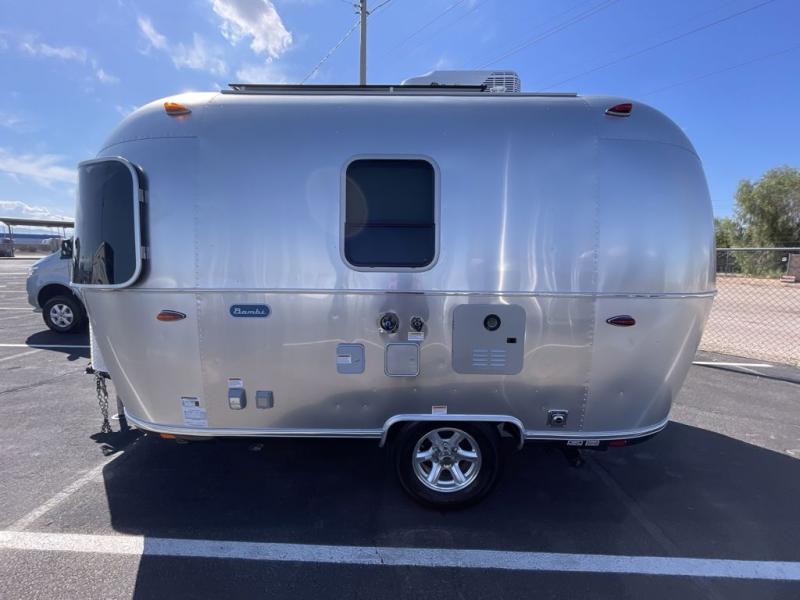 The lightweight, easy-to-maneuver Bambi travel trailer by Airstream is your ticket to outdoor fun and adventure. The panoramic front windows with blackout shades will provide natural lighting during the day, and privacy at night, and the seamless vinyl flooring will be easy to keep clean. Each model includes an efficient A/C with a heat strip, roll top overhead cabinets, and Performatex dinette cushions that are stain resistant. You will appreciate the 12V USB-A and USB-C ports to keep your devices charged, and the 24" 12V HDTV will provide entertainment when the weather isn't cooperating. The Bambi travel trailers also include a powered hitch jack with a light, roller shades, and an optional solar charging system for off-grid capabilities!