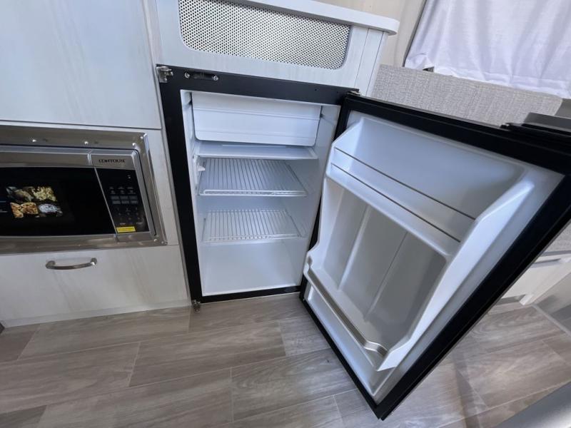 With a 16' 1" exterior length, you'll have no trouble at all getting in a out of campsites with this travel trailer. Once you've parked for the weekend, set up the manual ZipDee patio awning, then enjoy a cold drink in your camp chairs. You can head inside to prepare lunch on the two burner cooktop, or use the microwave oven. There is a stainless steel sink to clean your dishes in and a 3.1 cu. ft. 12V refrigerator for your perishables. The convenient wet bath on board allows you to stay clean throughout your adventures, and you'll find tons of storage space for your belongings. When you're ready to catch some ZZZ's, the pillow top memory foam mattress is sure to bring comfort, while your guests convert the dinette to comfortable sleeping space!