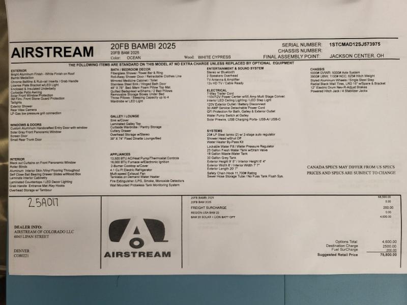 2025 Year End SaleAirstream Bambi travel trailer 20FB highlights:
